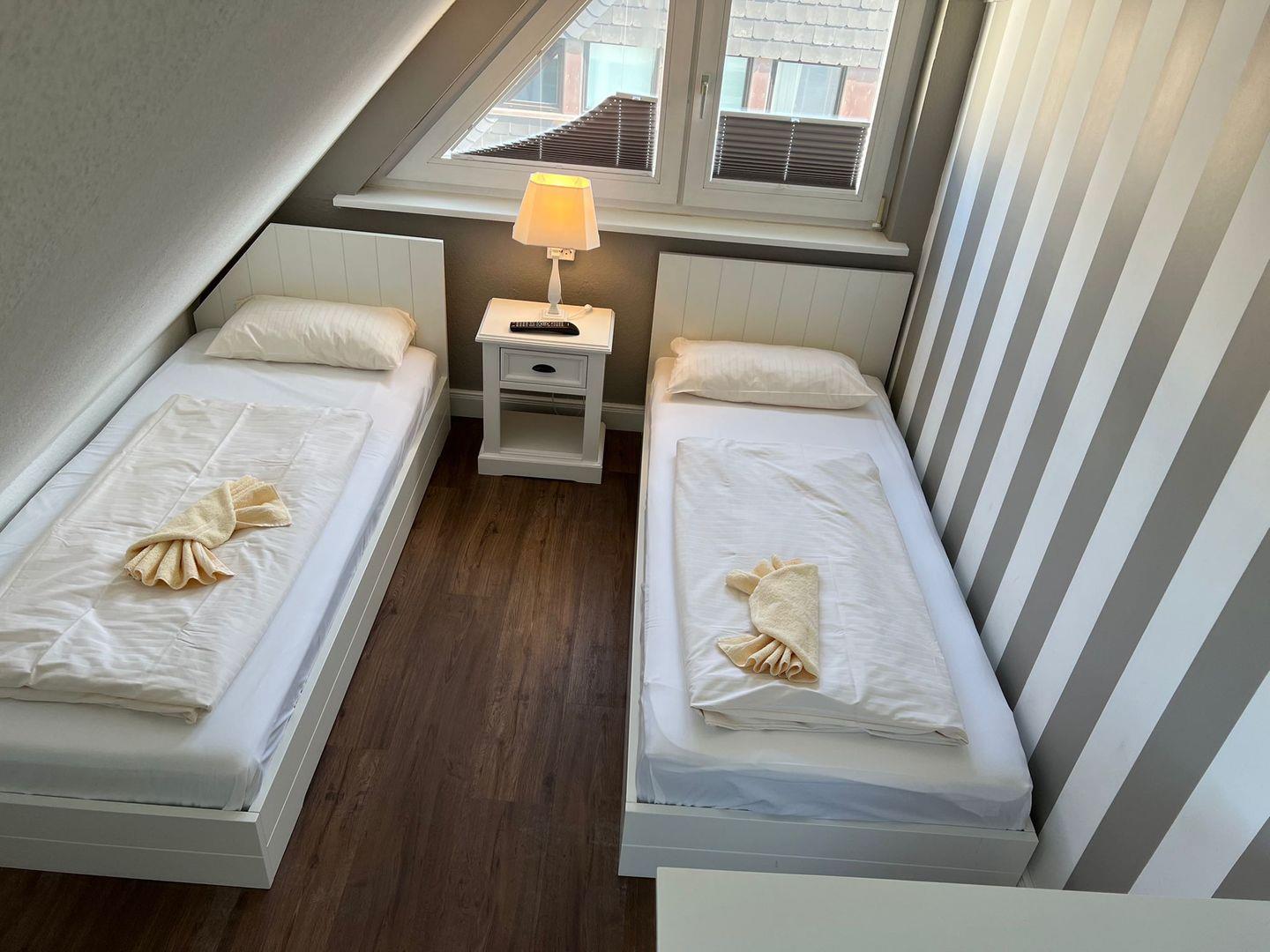 Moin Moin und Willkommen: Die moderne und gemütliche 2-Zimmer-Ferienwohnung "Muck" liegt im Herzen von Westerland, nah bei der Fußgängerzone Friedrichstraße und keine 500 Meter vom Strand entfernt. Sie verfügt über einen Tiefgaragenstellplatz und bietet einen gemeinschaftlichen Waschraum mit Waschmaschine und Trockner gegen Münzzahlung. Erst 2023 wurden das Badezimmer und die Küche vollständig für Sie erneuert. Das Appartement finden Sie im zweiten Stock einer kleinen Wohnanlage, charmant über zwei Ebenen gelegen und insgesamt circa 40 Quadratmeter groß. Zu "Muck" gehört ein großzügiger Ostbalkon mit Blick Richtung Sonnenaufgang. Falls Sie die Wohnung mit einem Kleinkind besuchen möchten, ist auch dies kein Problem. Optional können am Treppenaufgang in der Whg. befindliche Treppenschutzgitter angebracht werden und auch der Schlafbereich bietet ausreichend Platz, um vor den Betten der Eltern ein Reisebettchen zu stellen. Seien Sie unser Gast und genießen Sie eine schöne Zeit in unserer muckeligen Ferienwohnung „Muck“.
