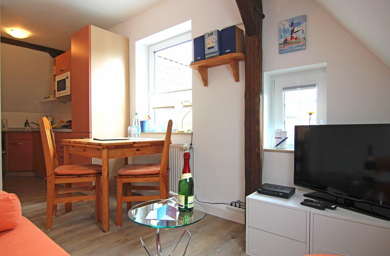 Perfekt für Ferien mit Meeresanschluss: Die 2-Zimmer-Ferienwohnung "Osten" liegt für Strandliebhaber ideal, im einfamilienhausgeprägten Süden von Westerland, nah bei der Innenstadt und doch ein wenig abseits, sodass es hier schön ruhig bleibt. Das Appartement befindet sich im ersten Stock eines Familienhauses mit drei Parteien, sie ist mit circa 30 Quadratmetern relativ klein, hat aber Ihren eigenen individuellen Charme, zum Teil sogar freiliegende Dachbalken.