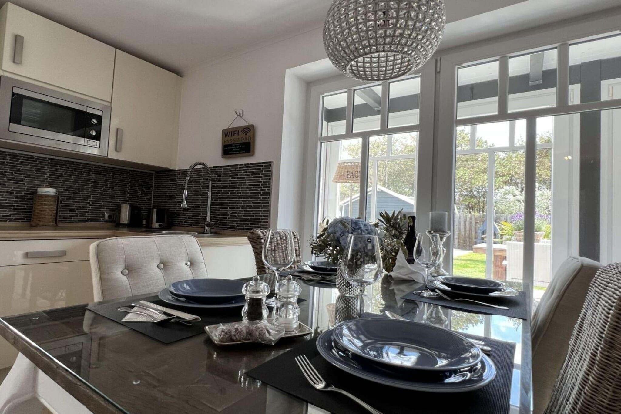 WILLKOMMEN IN DER "RANTUMBURG" Nur einen Atemzug entfernt vom feinen weißen Sandstrand, im idyllischen Rantum, liegt die Ferienwohnung "Rantumburg" – ein Rückzugsort, der Entspannung und Komfort vereint. Hier könnt Ihr nicht nur die frische Nordseeluft genießen, sondern seid gleichzeitig in der Nähe von beliebten Hotspots wie dem Rantumbecken, charmanten Cafés wie der Sylter Kaffeerösterei und erstklassigen Restaurants wie dem Söl’ring Hof. Stellt Euch vor, Ihr startet Euren Tag mit einem Spaziergang am Rantumer Badestrand, genießt Euren eigenen zur Unterkunft gehörenden Strandkorb in der ersten Reihe und lasst die salzige Brise auf Euch wirken. Danach nur wenige Schritte bis zu Eurer stilvollen Unterkunft, die Euch mit durchdachtem Design und Annehmlichkeiten empfängt. Die Rantumburg ist Euer perfekter Ausgangspunkt, um das pulsierende Inselleben zu entdecken, ohne auf den Komfort eines eigenen Zuhauses verzichten zu müssen. In den Schlafzimmern erwarten Euch Doppel-Boxspringbetten mit hochwertigen Matratzen, die für erholsame Nächte sorgen. Selbstverständlich fehlt es auch nicht an modernen Annehmlichkeiten: Jedes Schlafzimmer ist mit Smart-TV, Leseleuchten und praktischen Steckdosen am Bett ausgestattet. KULINARISCHE UNABHÄNGIGKEIT – GANZ NACH EUREM GESCHMACK Lust auf ein Dinner à la Carte – aber im privaten Rahmen? Die modern ausgestattete Küche lässt keine Wünsche offen. Die Spielwiese für Genießer lädt ein, nach Herzenslust zu kochen und Euch selbst kulinarisch zu verwöhnen – ob beim gemeinsamen Frühstück oder einem gemütlichen Dinner am Abend. Vom Induktionskochfeld über den Backofen und die Nespressomaschine bis hin zu Waffeleisen und Standmixer ist alles da, was das Kochherz begehrt. Für den besonderen Genuss gibt es natürlich auch eine Auswahl an stilvollen Wein- und Sektgläsern. Ihr möchtet doch lieber essen gehen? Keine Sorge – bekannte Restaurants wie die Sansibar und das Seepferdchen sind nur einen Katzensprung entfernt. ENTSPANNUNG UND WOHLFÜHLATMOSPHÄRE Im stilvoll eingerichteten Badezimmer werdet Ihr Euch wie in einer kleinen Wellness-Oase fühlen. Die freistehende Badewanne und die separate Runddusche bieten Raum für ausgiebige Entspannung. Dazu gibt es praktische Extras wie einen Kosmetikspiegel, Föhn und natürlich frische Handtücher. Für das besondere Wohlfühlambiente sorgt die harmonisch-warme Optik des Badezimmers. NETFLIX UND KAMINZAUBER – DER LOUNGE-BEREICH Der Wohnbereich bietet Euch den perfekten Mix aus Technologie und Gemütlichkeit. Ob Ihr vor dem flackernden Feuer des Holzkamins Netflix auf dem Smart-TV genießt oder Eure Lieblings-Playlist oder Podcasts über den kultigen Marshall-Lautsprecher streamt – dieser Raum ist wie gemacht für entspannte Stunden. MaritimeMöbel und ausgesuchte Accessoires verleihen dem Ganzen eine moderne und doch gemütliche Note. Für die etwas ruhigeren Momente stehen Euch Bücher und Gesellschaftsspiele zur Verfügung. OUTDOOR-FEELING IM INSELGARTEN– EURE PRIVATE OASE Der Inselgarten ist der ideale Rückzugsort – eine grüne Oase, die Euch gedanklich in tropische Welten versetzt. Exotische Palmen, Rosen, Lavendel und Dünengras. Hier könnt Ihr Euch auf der Teakholzterrasse entspannen und den Blick auf das balinesische Holzkrokodil genießen – ein unverwechselbares Highlight. Sonnige Nachmittage unter dem Sonnensegel der Strandmuschel oder Abende am Grill mit einem Glas Wein in der Hand machen Euren Aufenthalt unvergesslich. SMART LIVING – SERVICE UND AUSSTATTUNG Natürlich seid Ihr auch technisch auf dem neuesten Stand: Mit kostenlosem WLAN in allen Räumen, Smart-TVs auf denen Netflix inklusive ist und einer durchgehend warmen Fußbodenheizung, die für Komfort auf höchstem Niveau sorgt. Haushaltsgeräte wie Waschtrockner, Bügeleisen und Staubsauger stehen bereit.. Für die kleinsten Gäste halten wir ein Reisebett und einen Hochstuhl bereit – komplett kostenlos. Euer Fahrzeug erwartet ein reservierter Stellplatz direkt vor der Tür. Fahrräder parkt Ihr ganz entspannt in der Einfahrt oder im Garten, bereit für Eure nächsten Abenteuer auf Sylt. EURE AUSZEIT AUF SYLT BEGINNT JETZT Die Unterkunft "Rantumburg" ist der perfekte Ort, um den Alltag hinter sich zu lassen und die Schönheit Sylts in vollen Zügen zu genießen – ob Ihr die Insel aktiv erkunden oder einfach nur die Seele baumeln lassen möchtet.