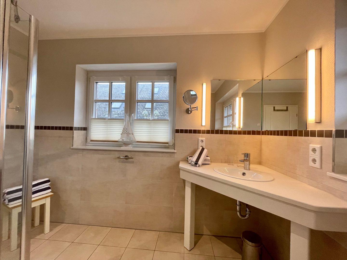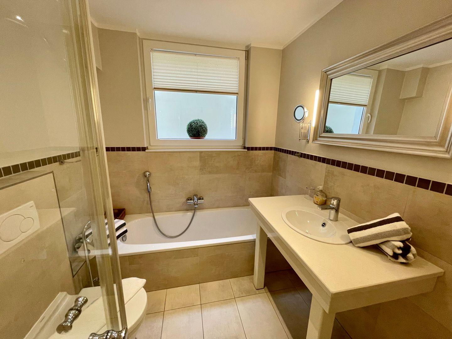 Der exklusive mit liebevollen Details ausgestattete Hausteil erstreckt sich auf 145qm über 4 Ebenen. Es stehen Ihnen 3 Schlafzimmer, 3 vollwertige Bäder, der eigene Garten mit Terrasse mit Gartenmöbeln und Strandkorb zur Verfügung. Ein zusätzlicher Raum mit Schlafcouch sowie separatem WC ist ebenfalls vorhanden.