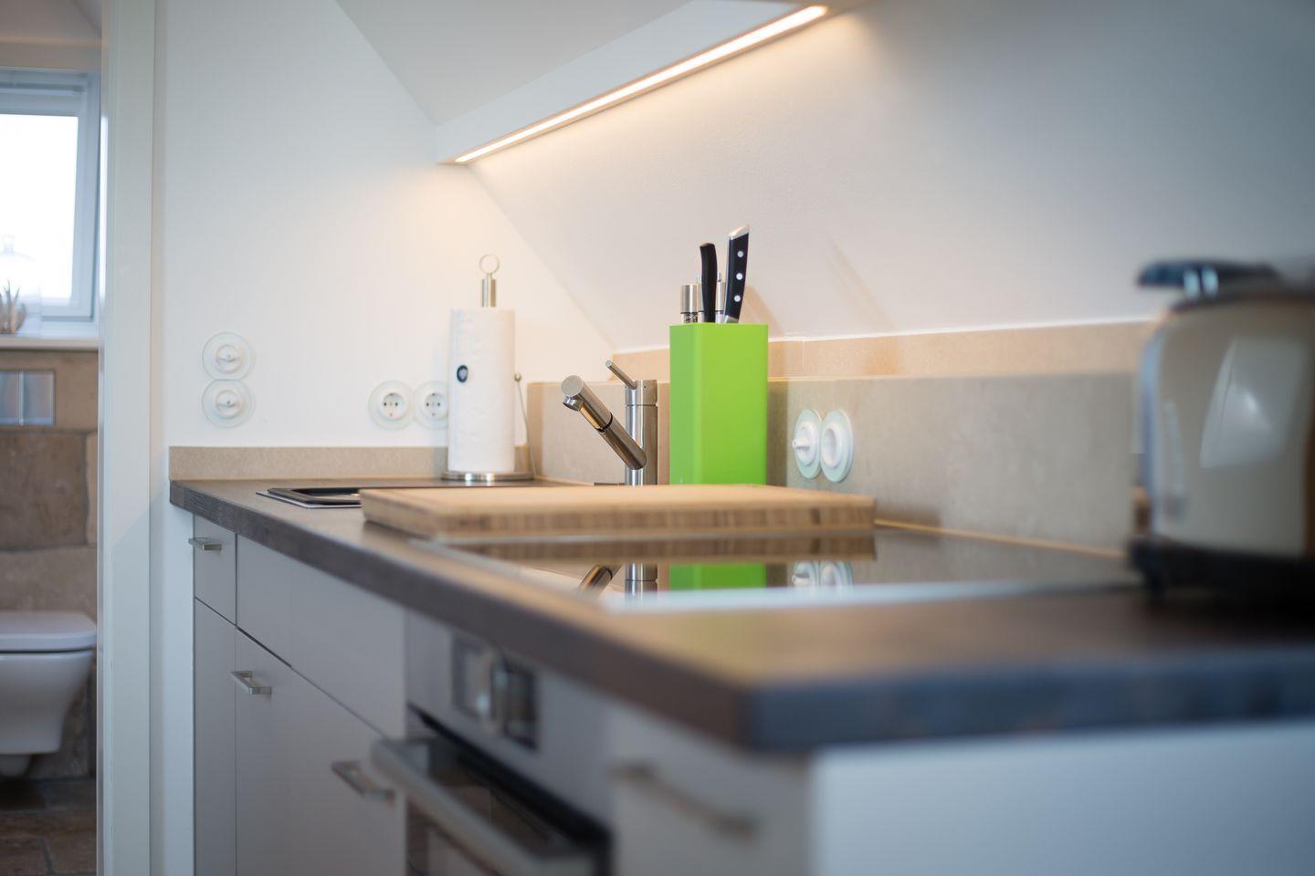 In Ihrem Appartement "Sky" erleben Sie daher nicht das klassische "form follows function", sondern kommen in den Genuss einer höheren Evolutionsstufe des Designs, nämlich des "form meets function". Raumästhetik verschmilzt mit zahlreichen Möglichkeiten, Ihren Traumurlaub in einem ganz besonderen Domizil zu verbringen. Und dafür bedarf es eben nicht viel Fläche, sondern einer detailversessenen, genialen Raumplanung und -umsetzung.