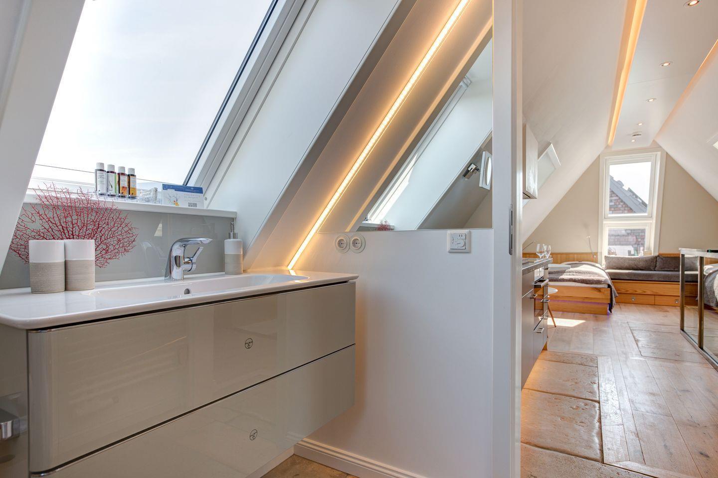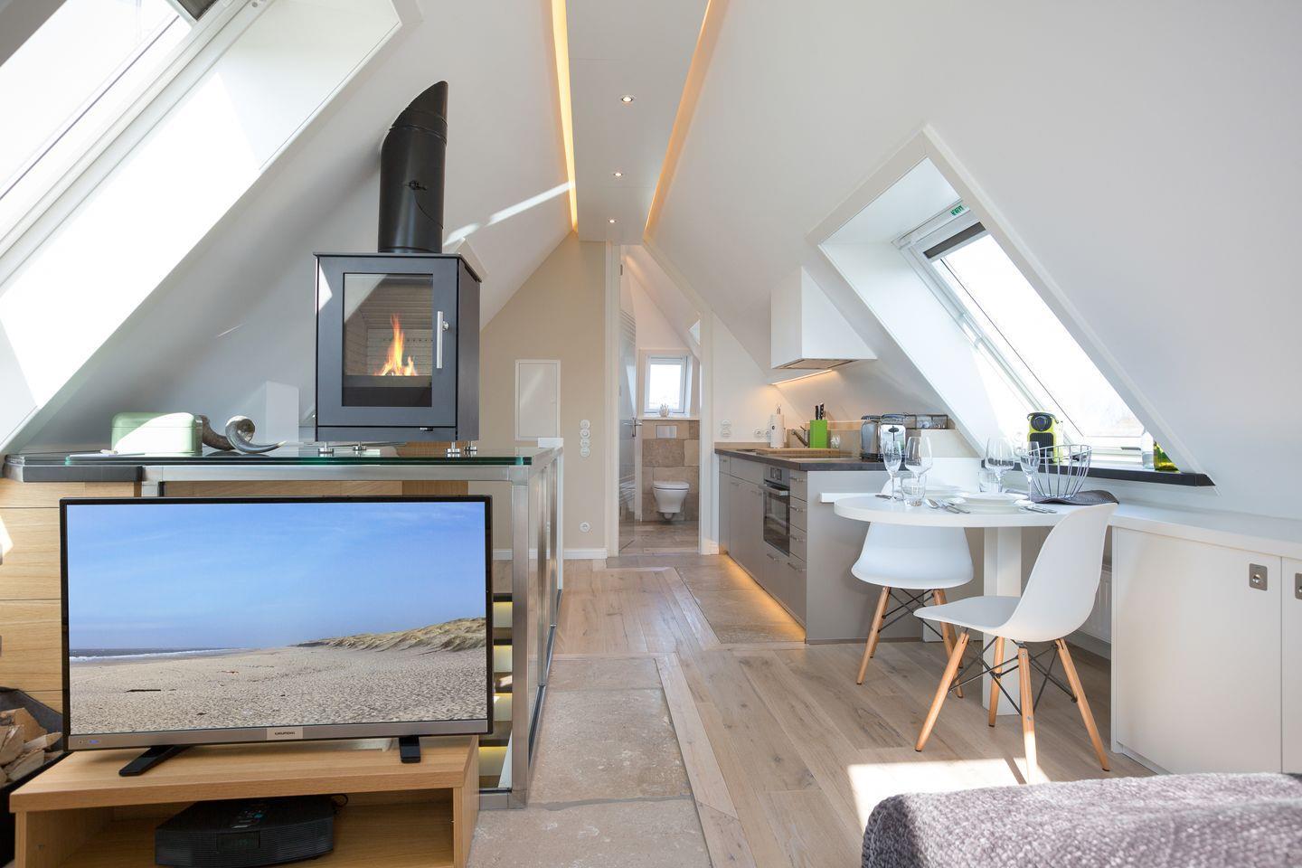 Sehr hochwertig und stilvoll gestalteter, kombinierter Wohn-/Wohlfühlbereich mit komfortabler Schlafcouch -/Bett (ca.180x200-matratzen getrennt). Detailverliebte Ausstattung mit Flat-TV, iPod Dock, Radio und WLAN verstehen sich von selbst. Die edle Küchenzeile bietet Ihnen mit Geschirrspüler, Espressomaschine, Mikrowelle, Backofen und Ceranfeld jeglichen Komfort. Besonderes Highlight ist ein kompakter Kaminofen für lauschige und chillige Abende. Luxuriöses Bad mit WC und großzügiger Raindance-Dusche für Ihren perfekten Start in den Sylter Urlaubstag.