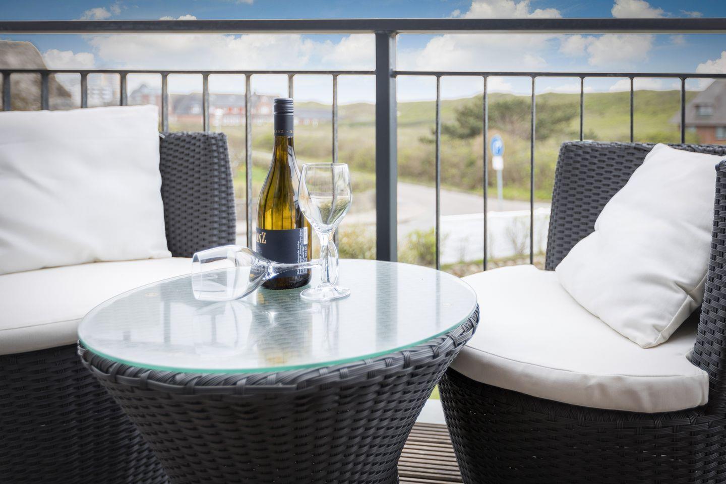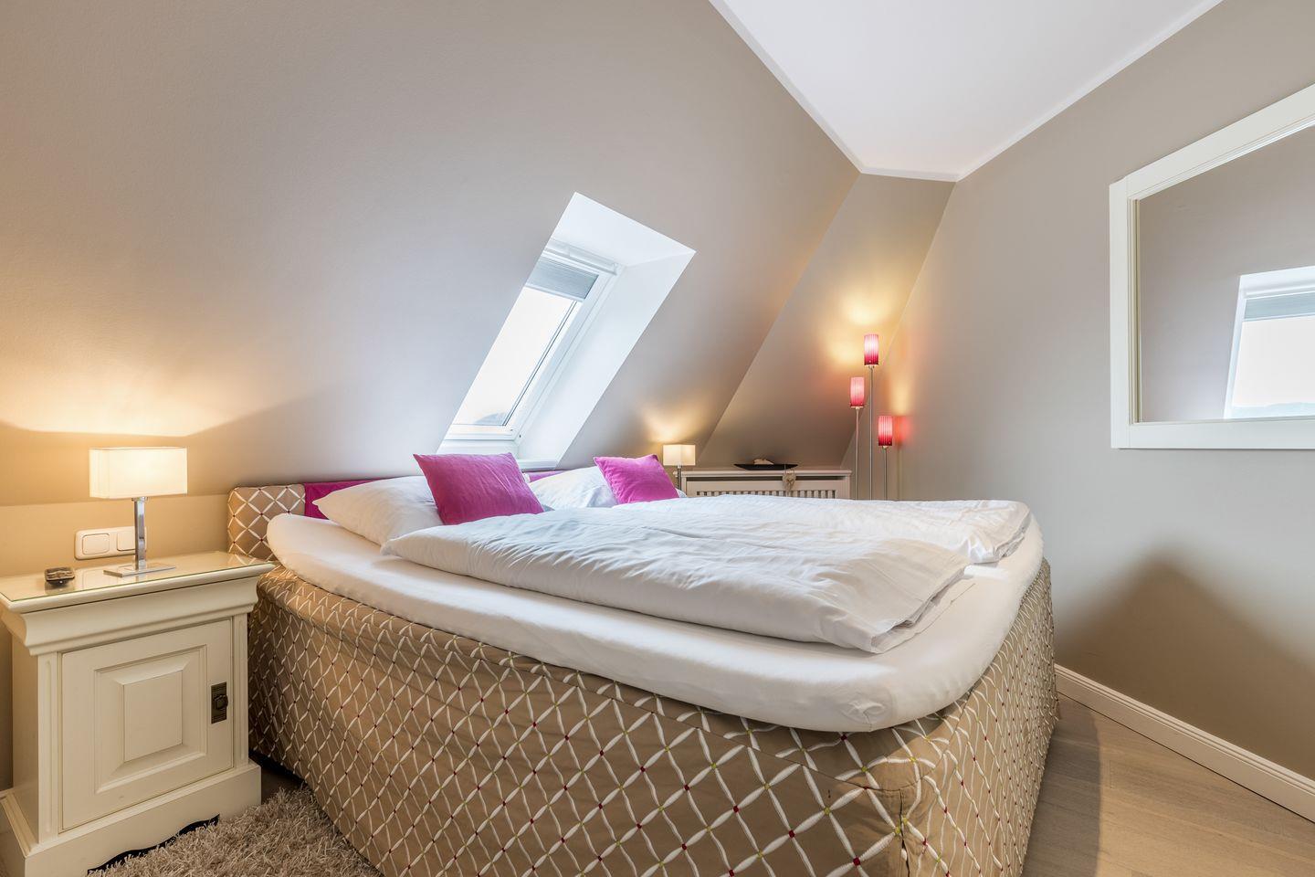 Im Obergeschoss der Wohnung Langeneß befindet sich der Wohnraum mit Couchecke, 3D Flatscreen-TV und Essbereich. Von hier aus gelangen Sie auf Ihren Balkon, der von April bis Oktober mit Gartenmöbeln möbliert ist. Die Küchenzeile ist mit Backofen, Mikrowelle, Spülmaschine und Nespresso-Kaffeemaschine top ausgestattet, sodass es Ihnen an nichts fehlen wird. Auf der gleichen Etage befindet sich ein Schlafzimmer mit Boxspring-Doppelbett (180 x 200cm) und ein Badezimmer mit Badewanne, Dusche und WC.