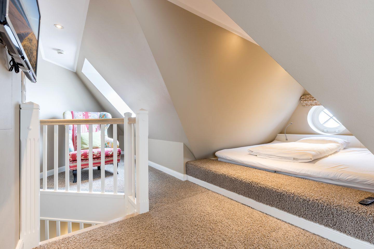 Im Dachgeschoss der Wohnung finden Sie einen weiteren Raum mit Einzel-Kojenbett (160 x200cm) und einem Flatscreen-TV.