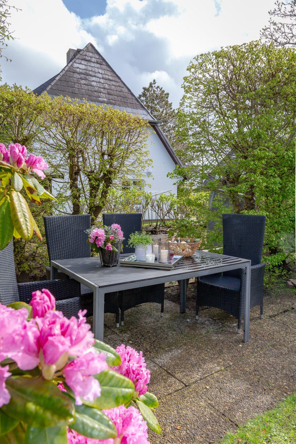 Ein besonderes Highlight dieser Ferienwohnung ist die separate Terrasse, die mit einer gemütlichen Sitzgarnitur ausgestattet ist. Hier können Sie die Sonnenstunden im Freien genießen, während Sie den Blick auf den liebevoll angelegten Garten schweifen lassen. Entspannen Sie sich bei einem guten Buch, einem erfrischenden Getränk oder einfach nur in angenehmer Gesellschaft.