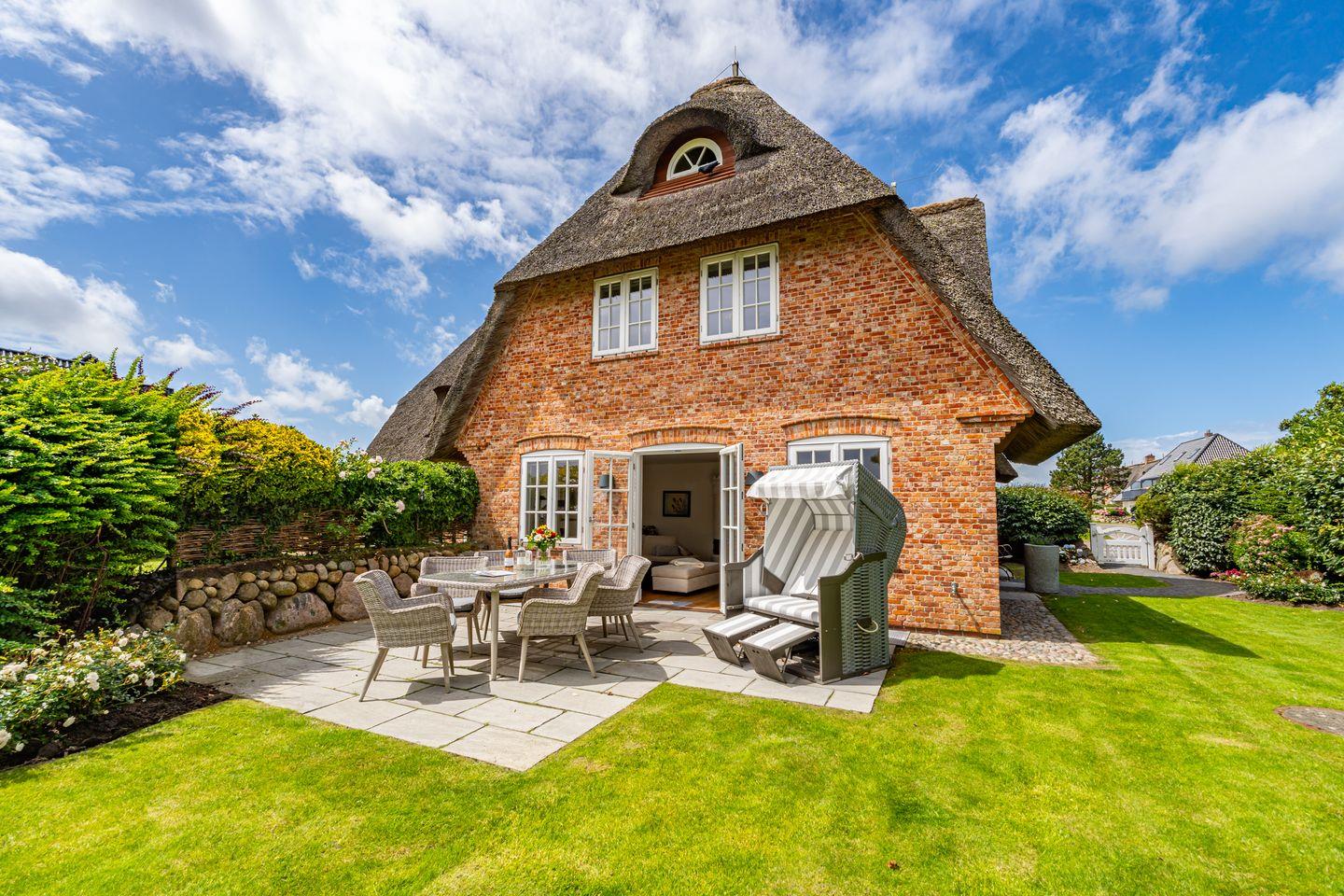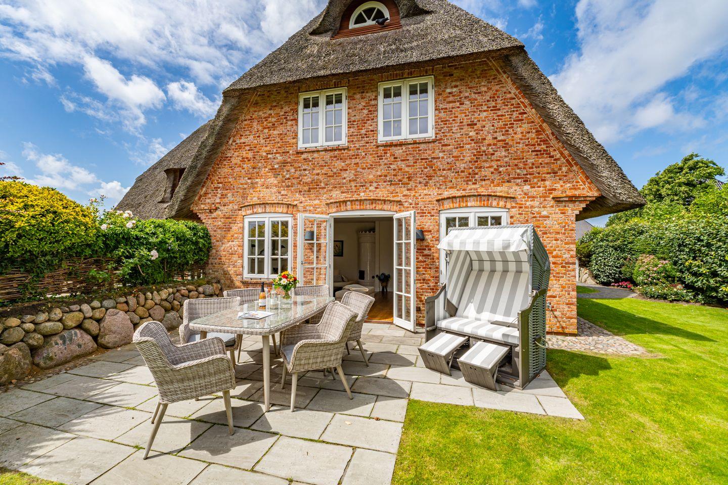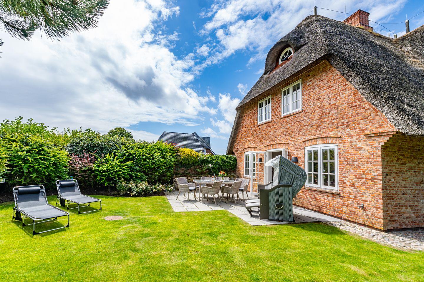 Das große Wohn/Esszimmer und die separate, vollausgestattete geschlossenen Küche laden dazu ein, gemütliche Stunden in geselliger Runde zu verbringen. Der hochwertige Holzfußboden sowie der Kachelofen sorgen für eine ganz besondere Atmosphäre, selbst bei stürmischem Wetter. Von hier aus gelangen Sie auch auf die Terrasse und den Garten. Ob Im eigenen Strandkorb oder auf den Sonnenliegen, wir versprechen Ihnen hier Syltfeeling pur. Ebenfalls im Erdgeschoss befindet sich ein Gäste WC. Im Untergeschoss gibt es neben dem Doppelschlafzimmer ein weiters Highlight, das große Badezimmer mit finnischer Sauna, Badewanne und Regendusche. Ein weiters Doppelschlafzimmer sowie ein Einzelschlafzimmer befinden sich ersten Obergeschoss. Hier stehen Ihnen zwei Badezimmer mit Dusche und WC zur Verfügung. Ein eigener Parkplatz befindet sich vor dem Ferienhaus.