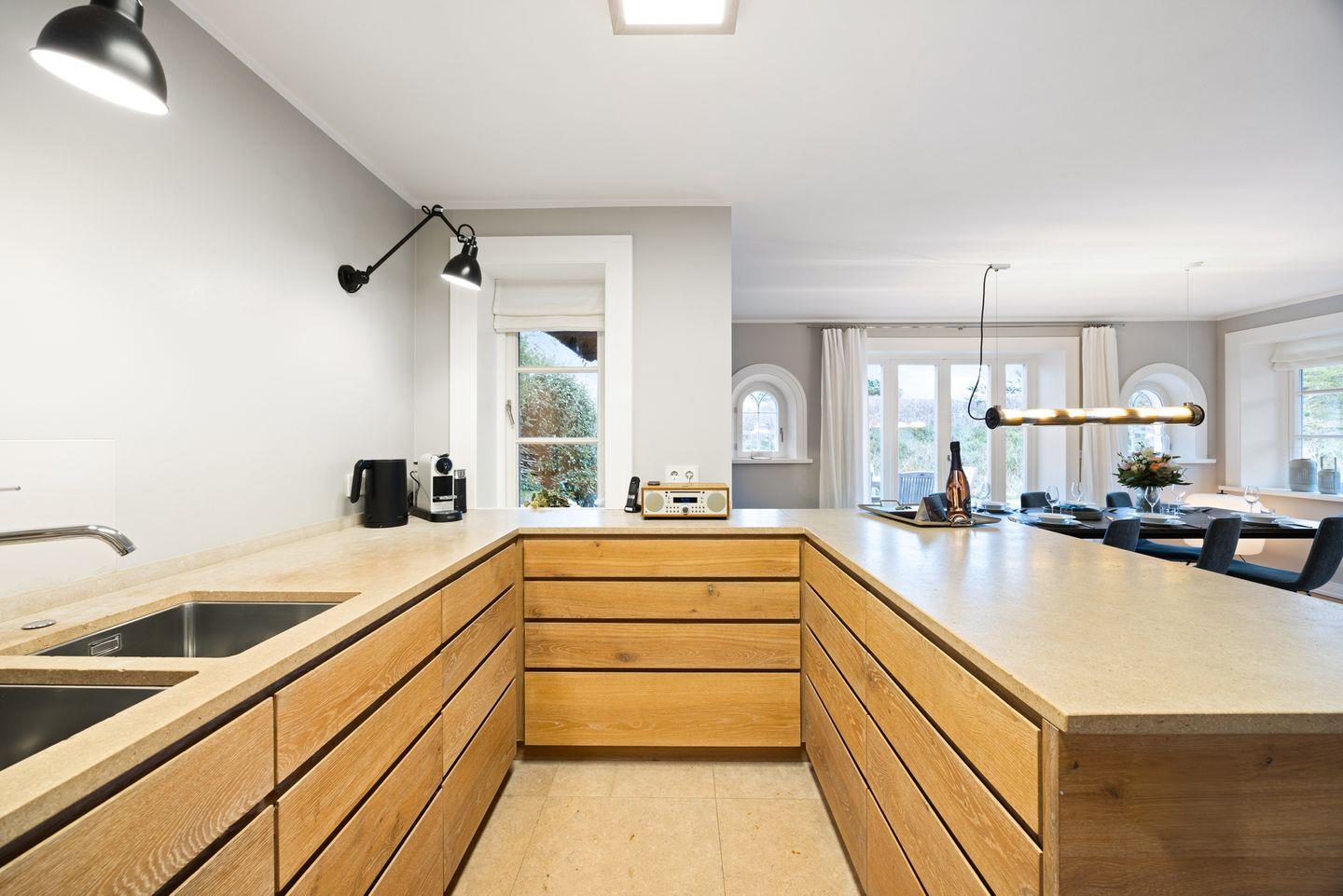 Die offene Küche ist perfekt ausgestattet, um auch im Urlaub keine Wünsche offen zu lassen. Modernste Geräte sorgen für höchsten Komfort und machen die Zubereitung von Mahlzeiten zum Vergnügen.