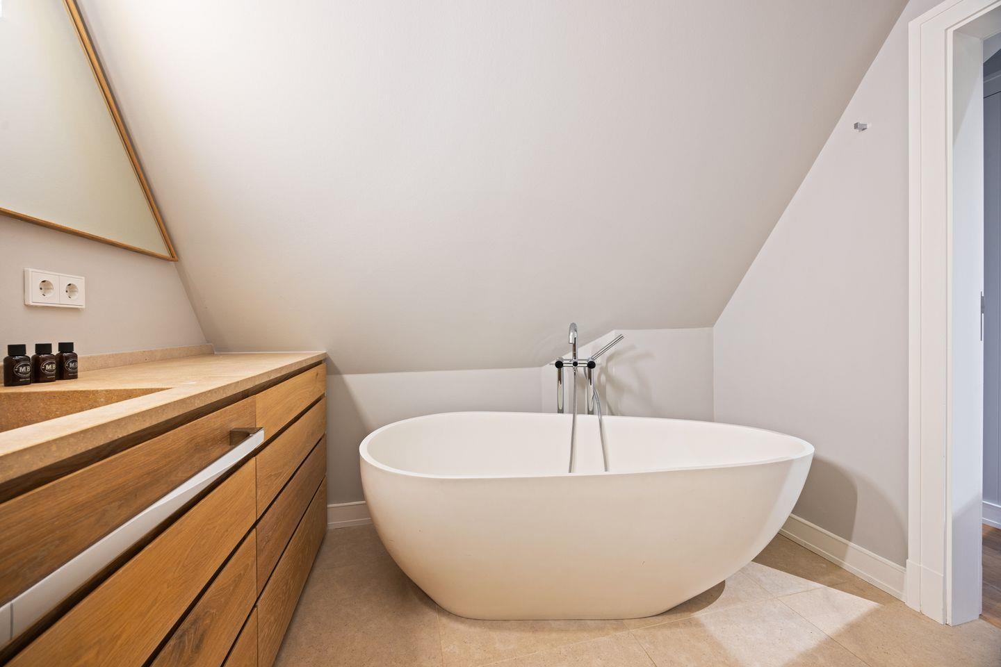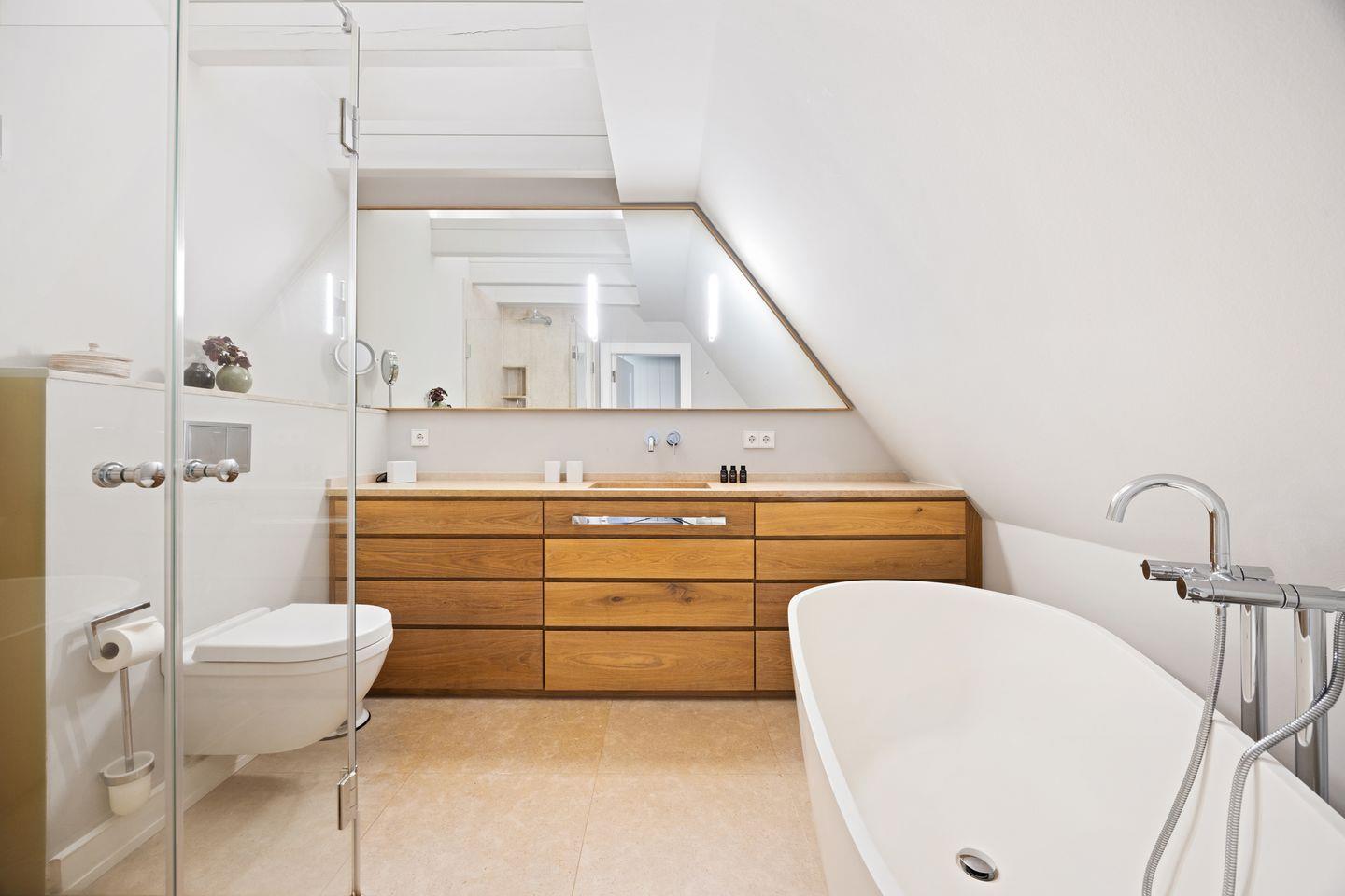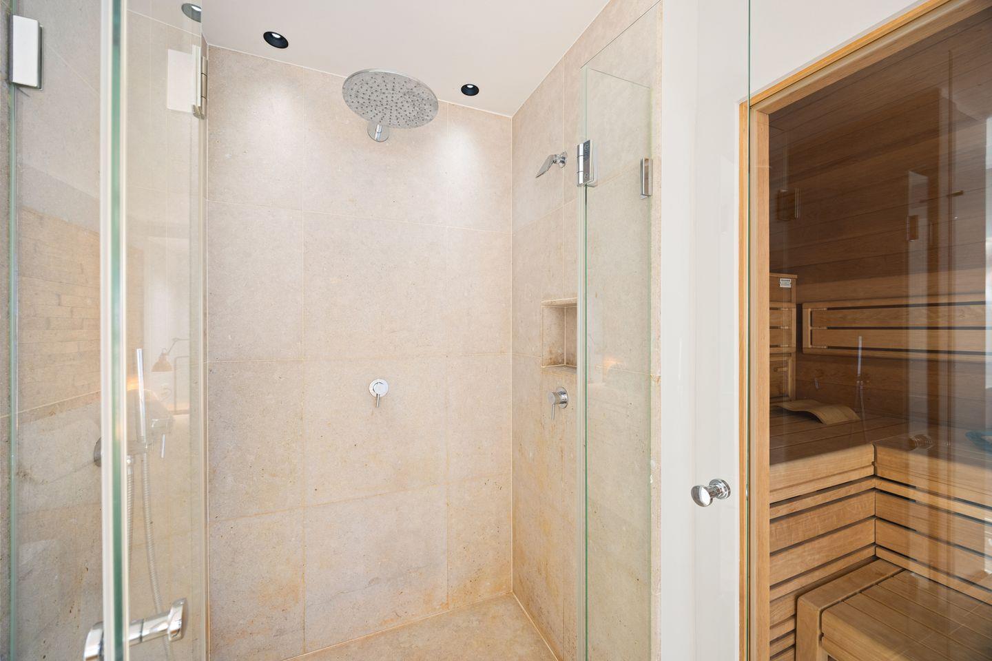 Die private Wellness-Oase mit Sauna und Ruhebereich lädt zum Entspannen ein. Zwei moderne Badezimmer mit Regenduschen sowie ein zusätzliches Gäste-WC sorgen für höchsten Komfort.