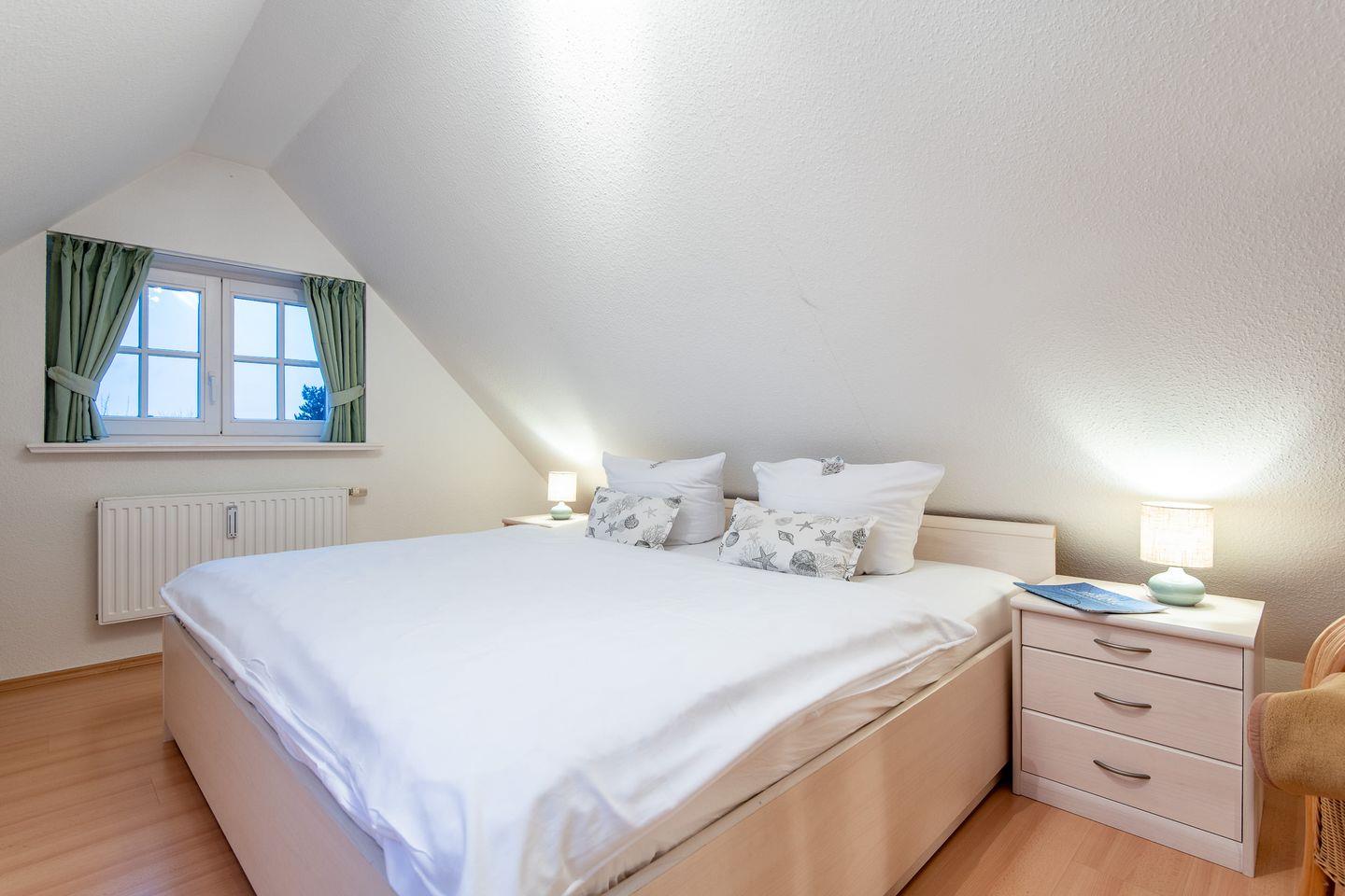 Im Dachgeschoss erwartet Sie das gemütliche Hauptschlafzimmer – eine wahre Wohlfühloase für erholsame Nächte. Ein weiteres Einzelbett im Obergeschoss bietet Platz für eine dritte Person und macht die Wohnung auch für kleine Familien ideal.