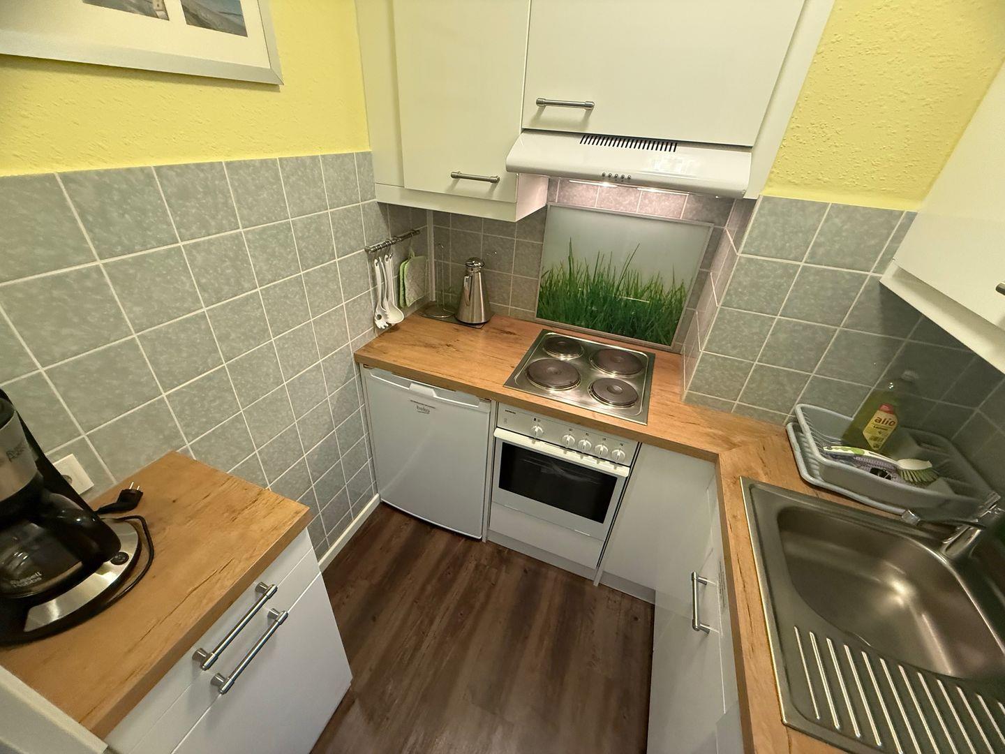 Die voll ausgestattete Küche lässt keine Wünsche offen und ist ideal für all jene, die gerne selbst kochen. Ausgestattet mit einem 4er Kochfeld, einem Backofen, einer Spülmaschine, einem Kühlschrank mit Gefrierfach, sowie Küchenutensilien, sind Sie bestens für die Zubereitung Ihrer Lieblingsgerichte gerüstet. Genießen Sie Ihre Mahlzeiten auf dem Balkon, der zum Verweilen einlädt und die frische Meeresbrise bietet.