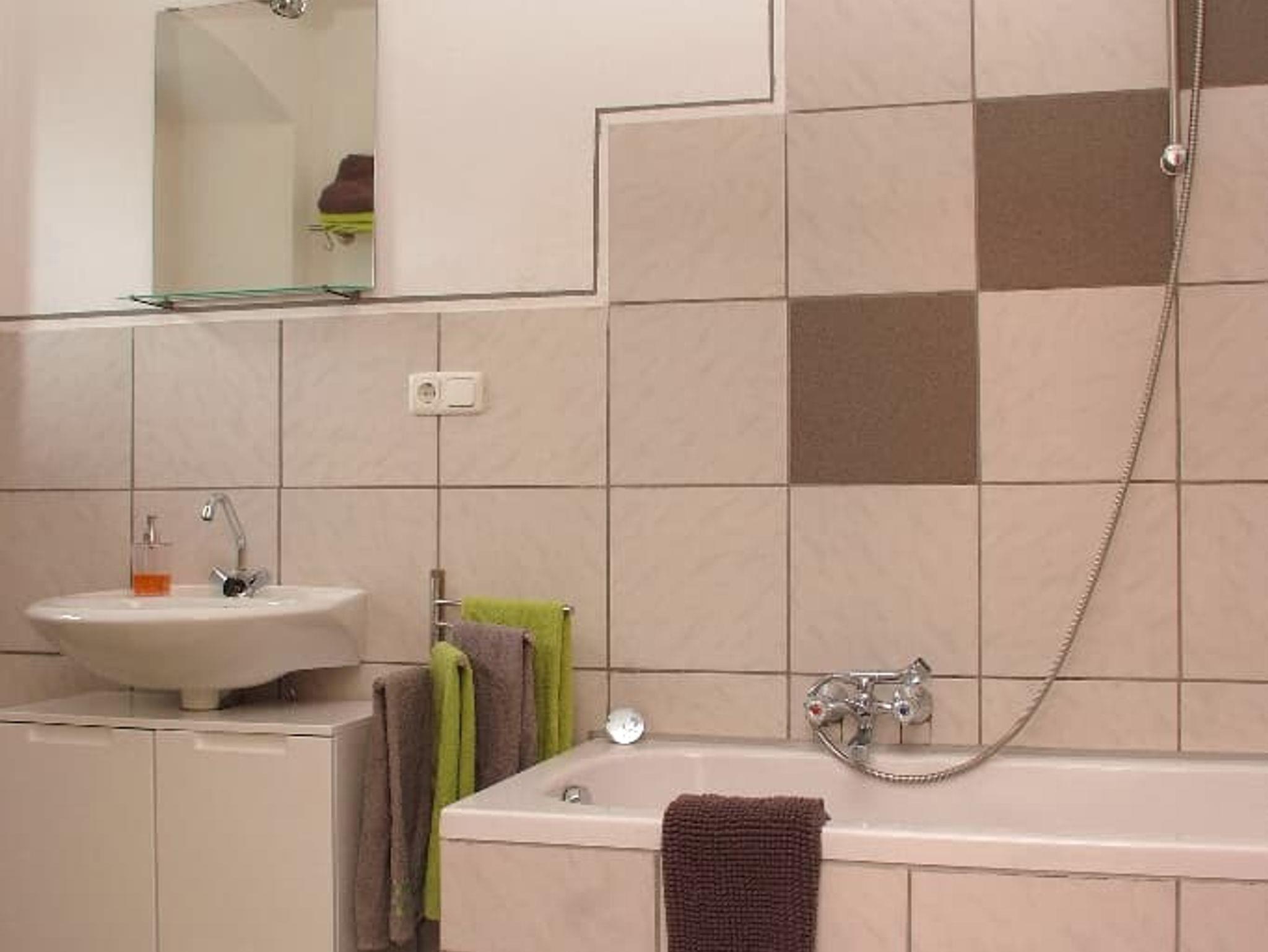Unsere Ferienwohnung mit 65m² Wohnfläche bietet Platz für 1-4 Personen. Das gemütliche Wohnzimmer mit Schlafsofa und Fernseher lädt zum Verweilen ein. Eine Essecke befindet sich ebenfalls in der Wohnung. Die komplett ausgestattete Küche mit Kühlschrank, Herd, Backofen, Mikrowelle, Toaster und Kaffeemaschine lässt keine Wünsche offen. Die Ferienwohnung verfügt über zwei Schlafzimmer mit einem Doppelbett und zwei Einzelbetten. Das Badezimmer mit Badewanne, Dusche, Spiegel und Föhn rundet das Gesamtbild ab. Bitte beachten Sie, dass keine Haustiere erlaubt sind. Bettwäsche und Handtücher sind in der Ferienwohnung bereits vorhanden. Das WLAN und den Parkplatz vor dem Haus können Sie kostenfrei nutzen.