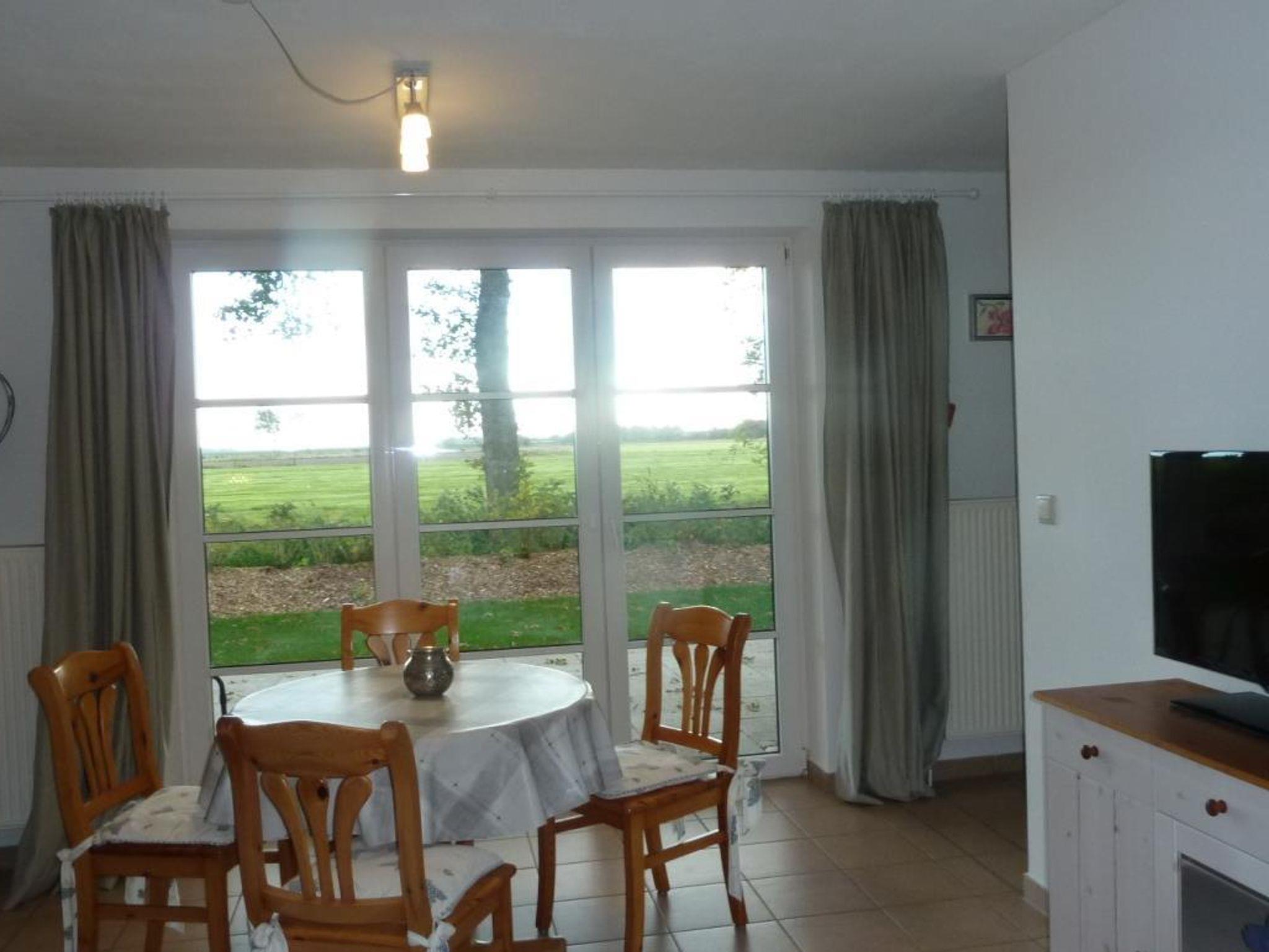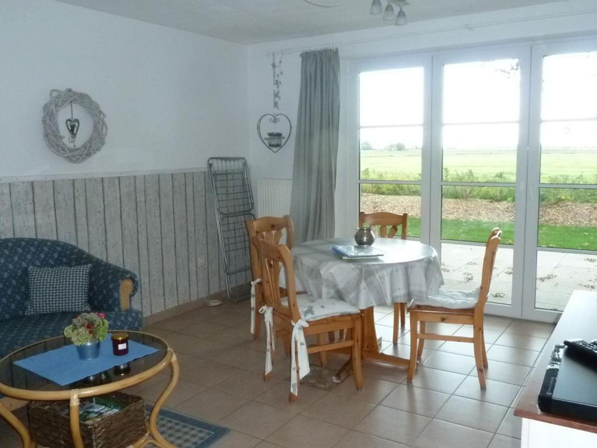 Die Wohnung ist ebenerdig mit seperatem Eingang und direktem Zugang zur Südterrasse. Durch die bodentiefen Fenster im Wohnzimmer haben Sie einen herrlichen Panoramablick in die schöne Eiderstedter Landschaft.