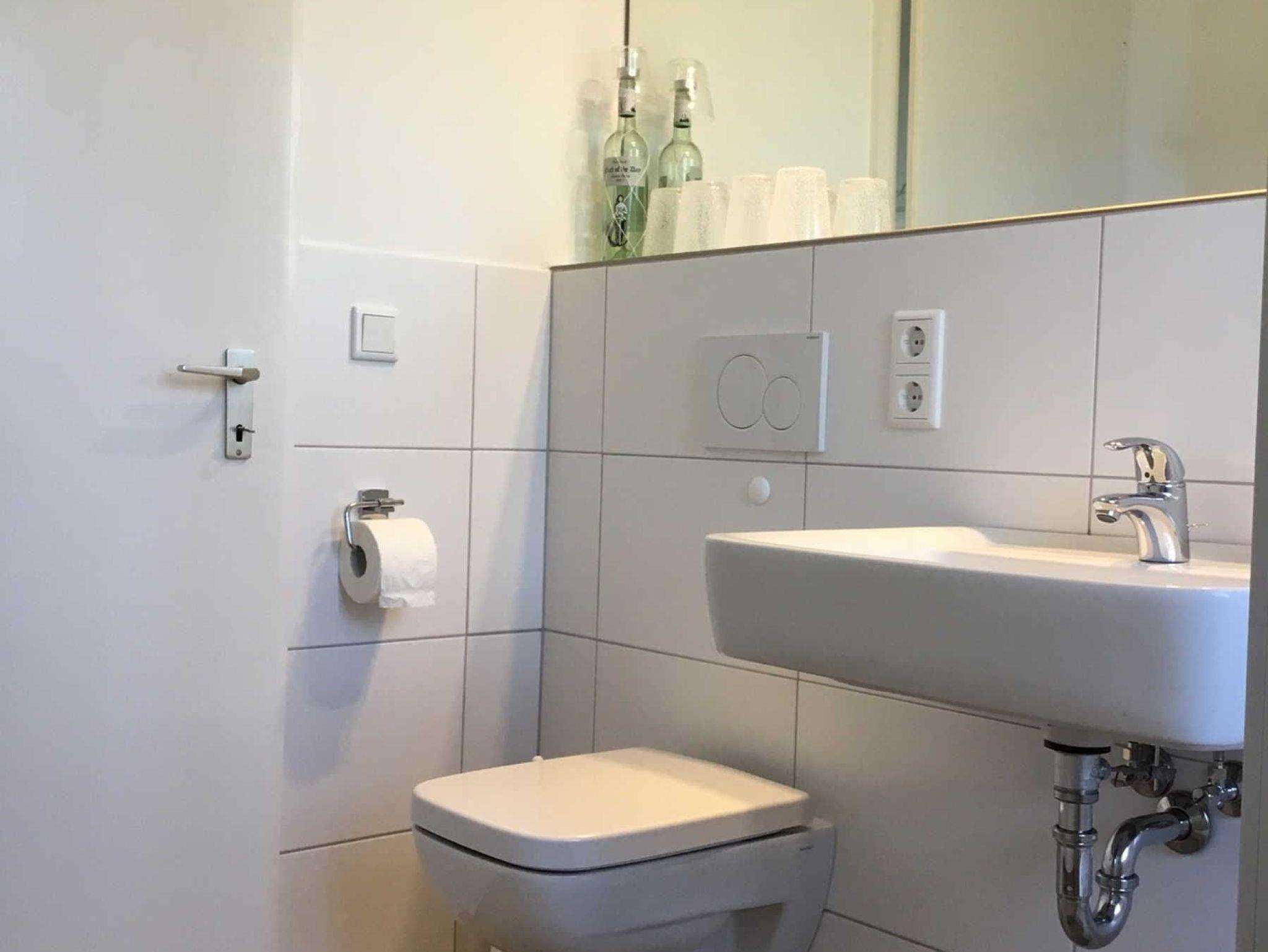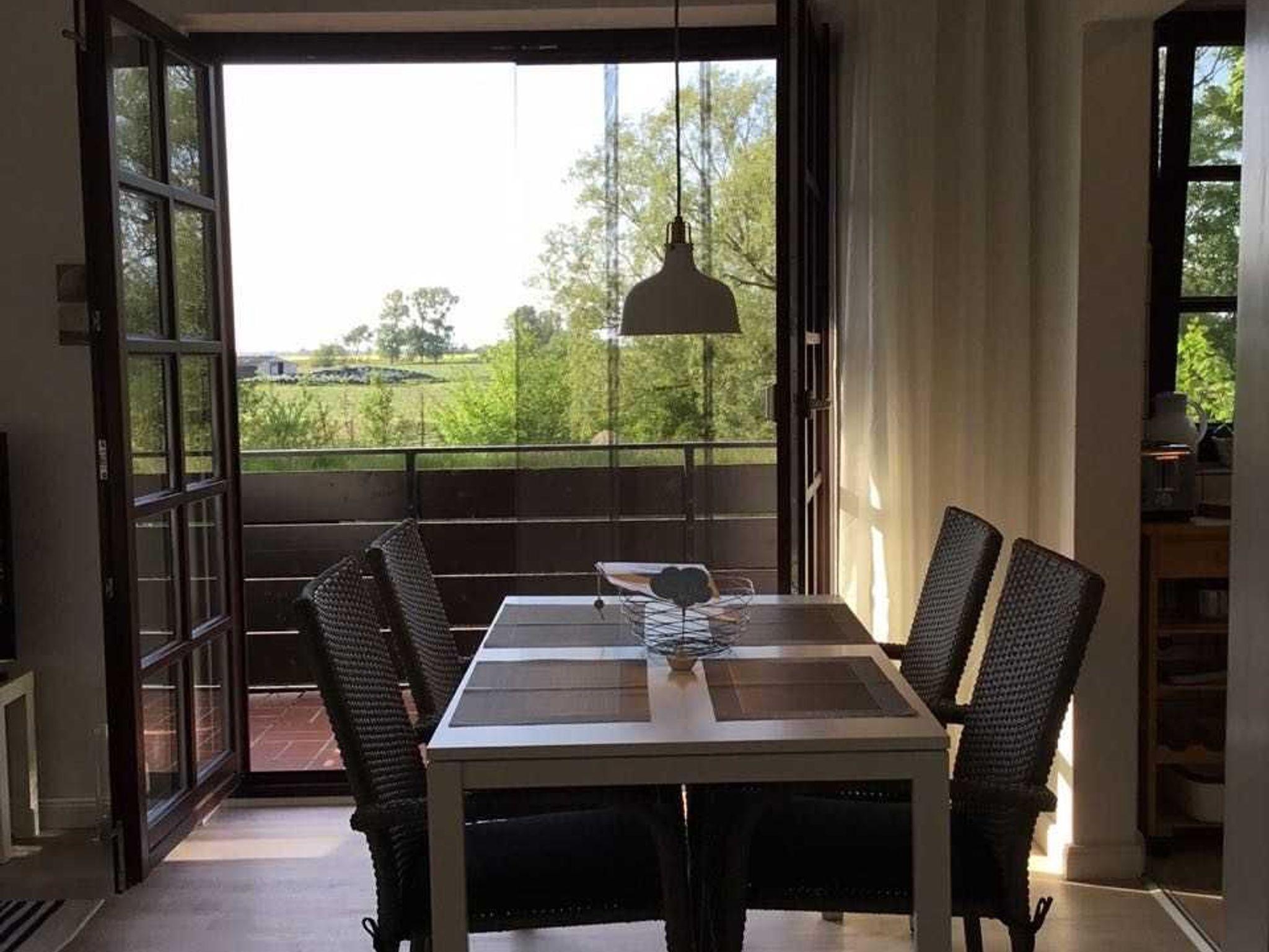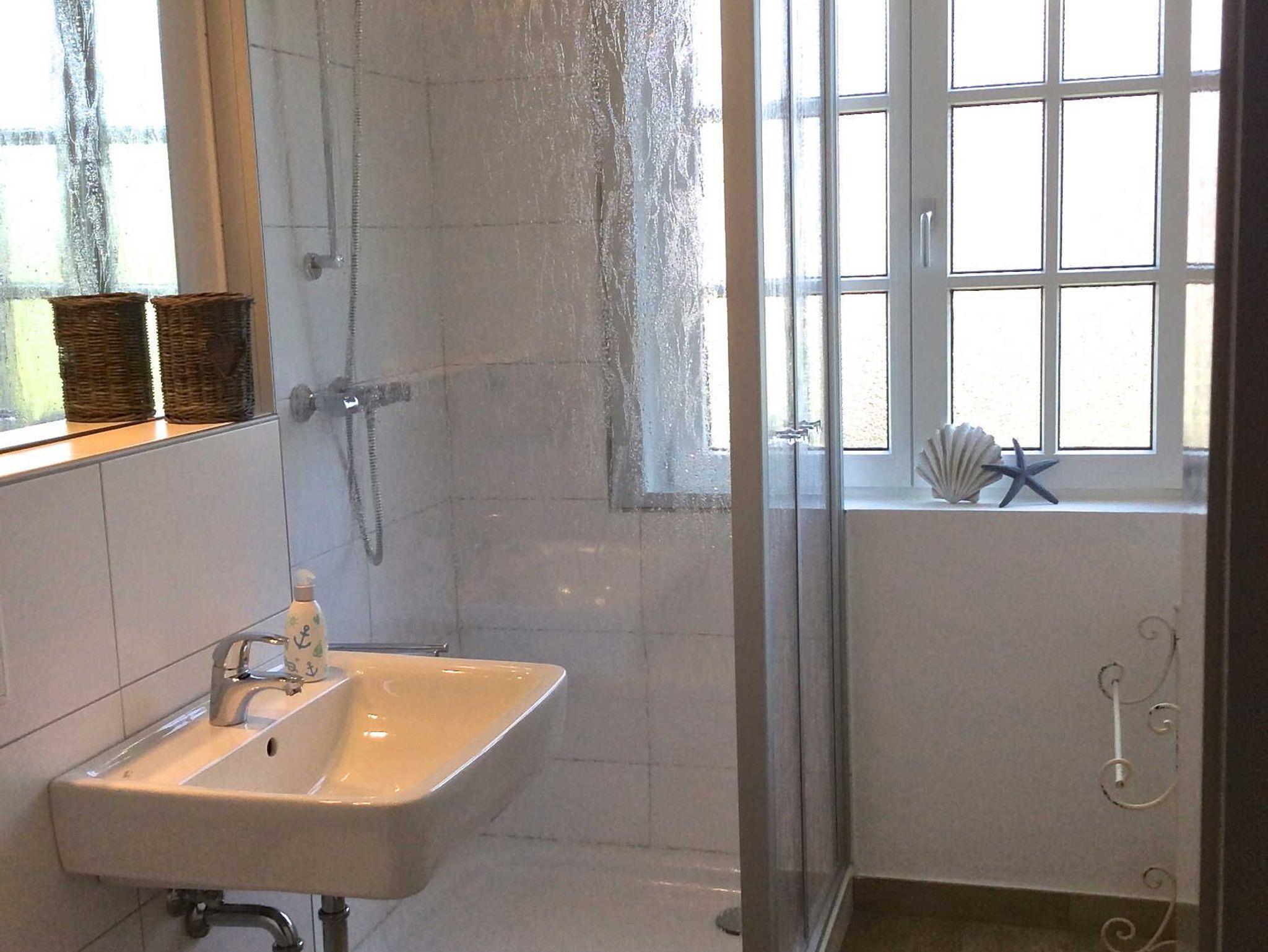 SEEWOLKE N° 2 besteht aus einem Wohn-/Esszimmer mit neuem, ganz modernem Schlafsofa (1,40 x 2,00 m), einem Schlafzimmer mit Swiss-Flex Doppelbett, einer voll ausgestatteten offenen Küche mit Fenster mit 4 Platten Ceranfeld-Herd, Backofen, Geschirrspüler, Kühlschrank mit Gefrierfach und Mikrowelle sowie ausreichend hochwertigem Geschirr und Gläsern (8-fach) , Töpfen etc., einem Flur, einem komplett modernisierten Duschbad und einem praktischen Abstellraum mit Waschmaschine. Gegen störende Mücken in der Nacht befinden sich an vielen Fenstern Insektenschutzrahmen.