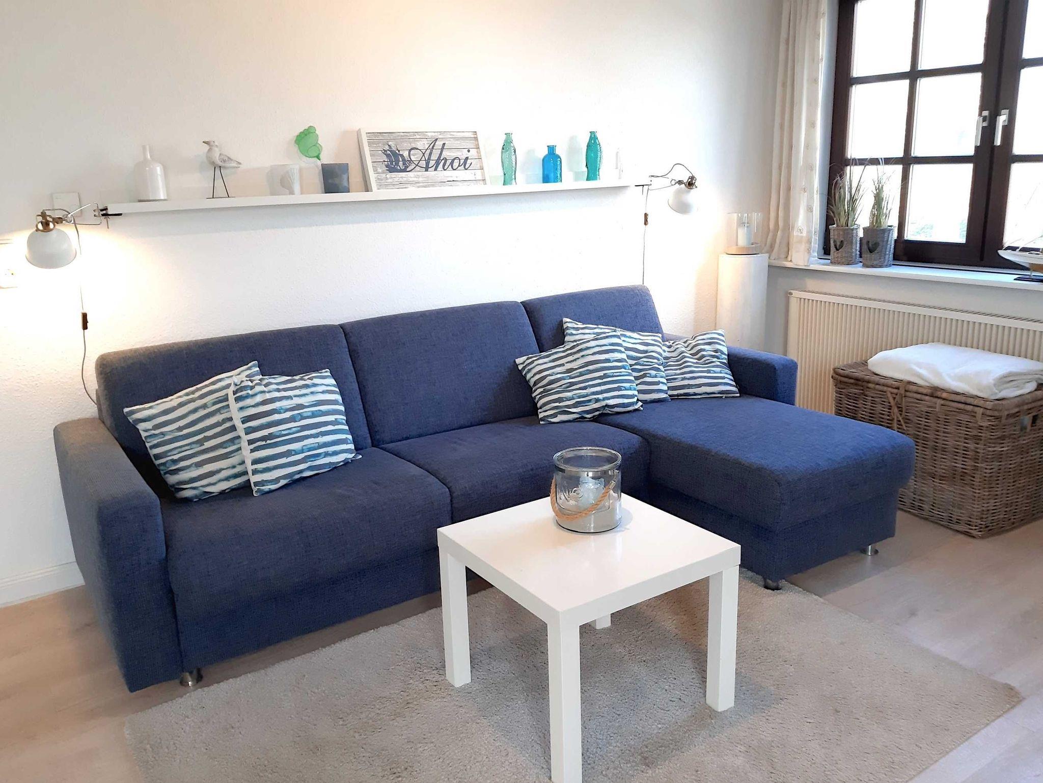 Die ganze Wohnung ist mit nordisch rustikal anmutendem Fußboden ausgelegt und nordseemäßig unaufdringlich mit maritimen Elementen dekoriert.