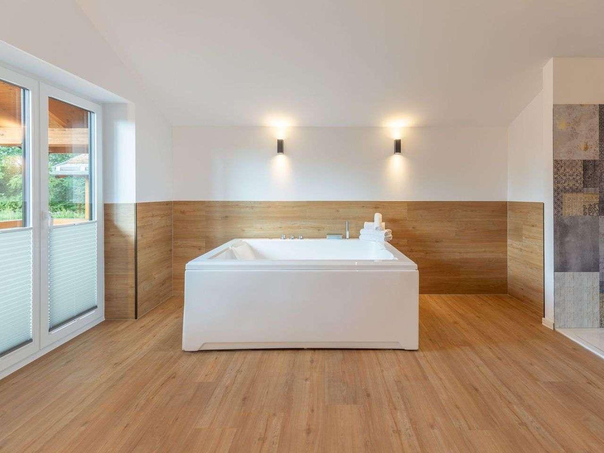 Ein modernes Badezimmer mit bodengleicher Dusche, WC sowie Sauna und einem Whirlpool sorgen für besonderen Komfort. Ein echtes Highlight ist der angrenzende Balkon mit wunderbarer Aussicht über das Katinger Watt!