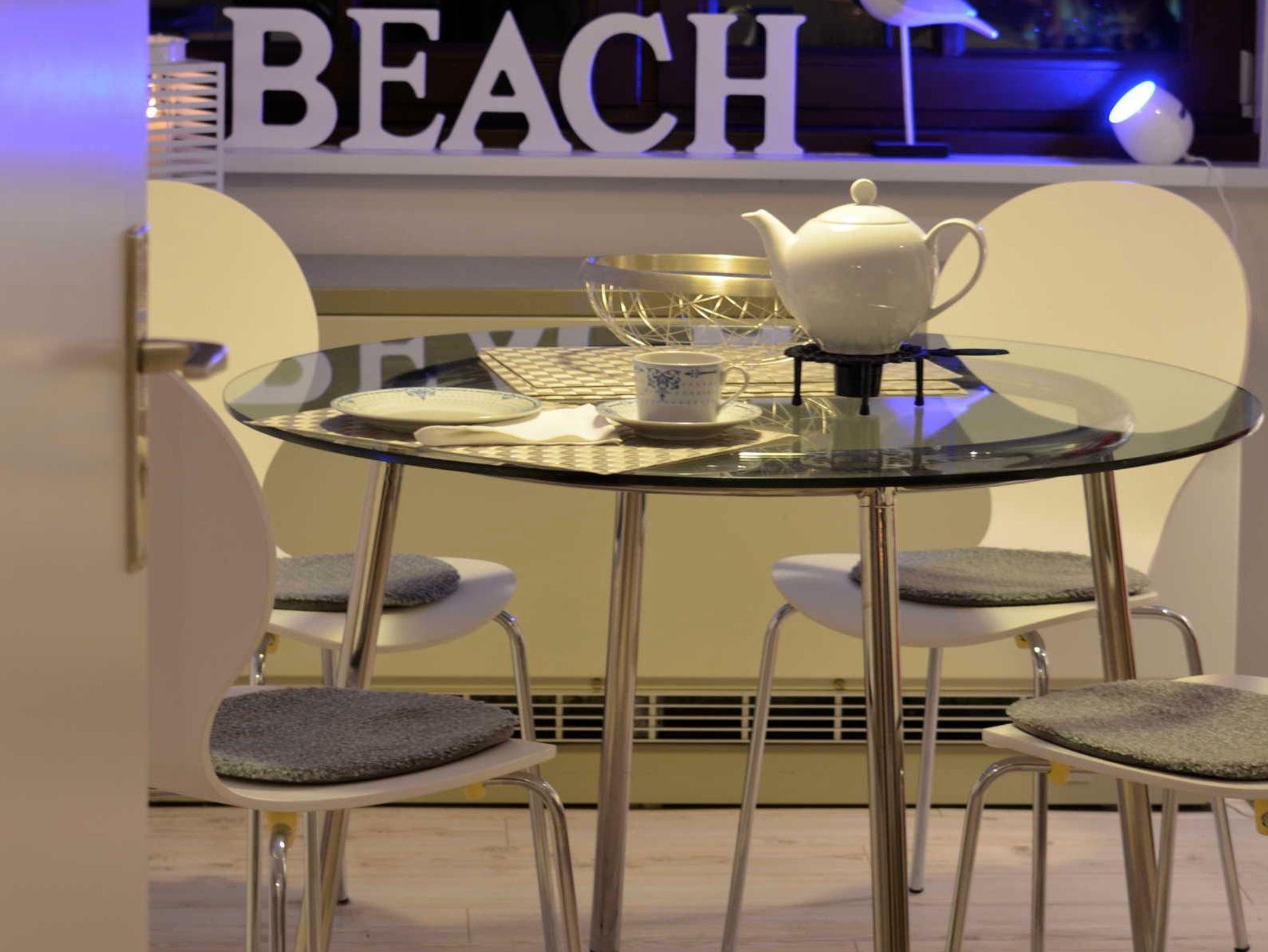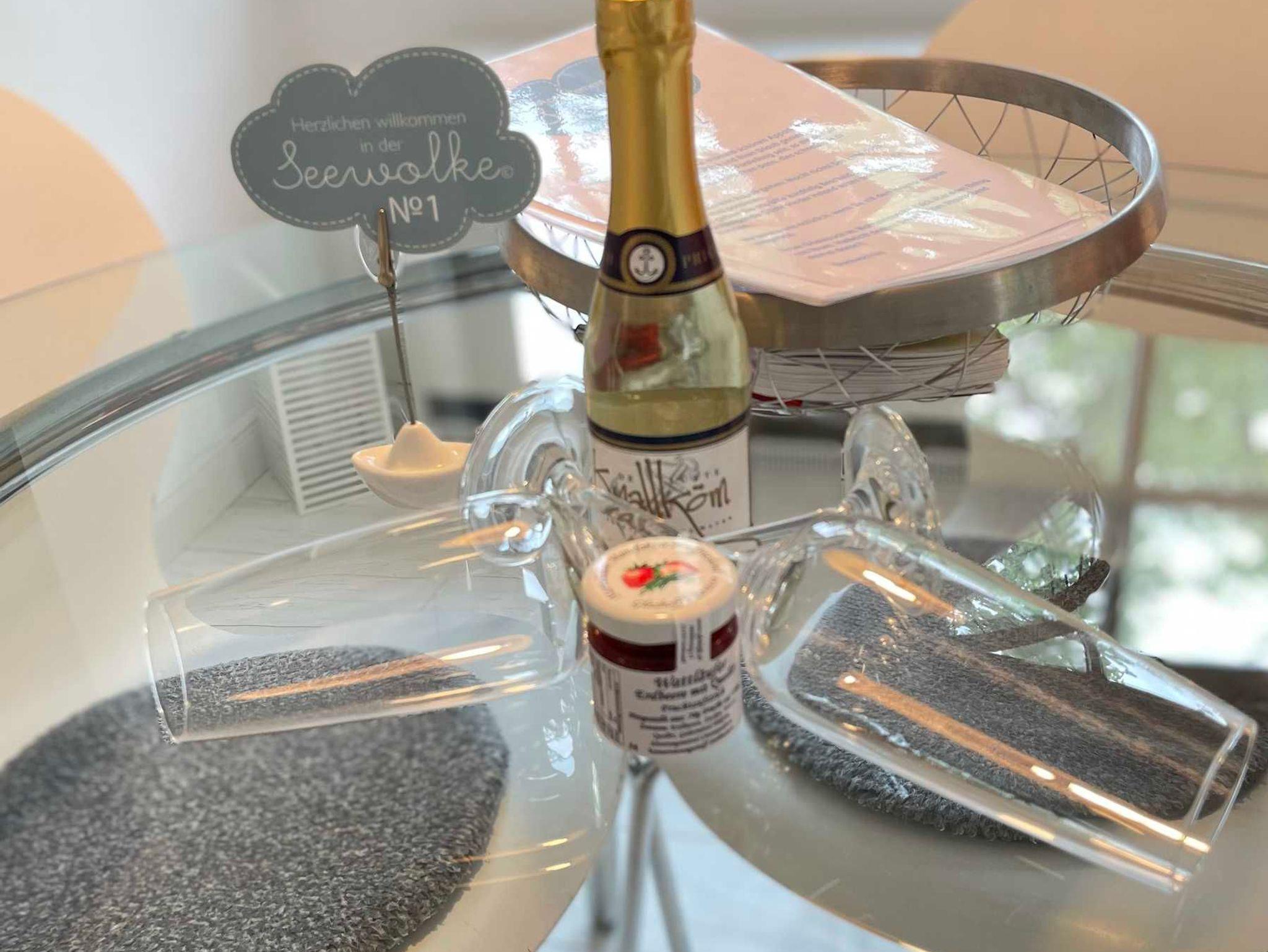 SEEWOLKE besteht aus einem Wohn-/Esszimmer mit breiter Schlafcouch (1,60m x 2m), einem Schlafzimmer mit Doppelbett, einer voll ausgestatteter Küche mit Fenster: 4 Platten Ceranherd mit Backofen, Geschirrspüler, Kühlschrank mit Gefrierfach und Mikrowelle, sowie ausreichend Geschirr und Gläsern (8-fach), TCHIBO Espresso-Kapselmaschine, Töpfen etc., einem Flur, einem modernen, hellen Duschbad und einem praktischen Abstellraum. Gegen störende Mücken in der Nacht befinden sich an vielen Fenstern Insektenschutzrahmen.