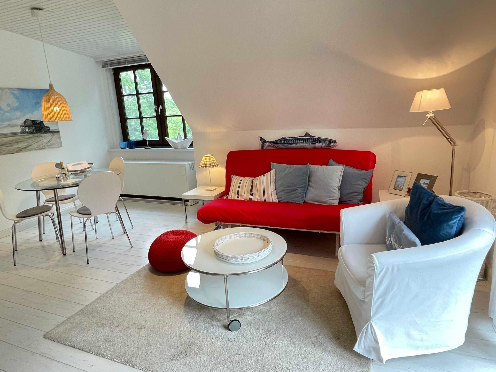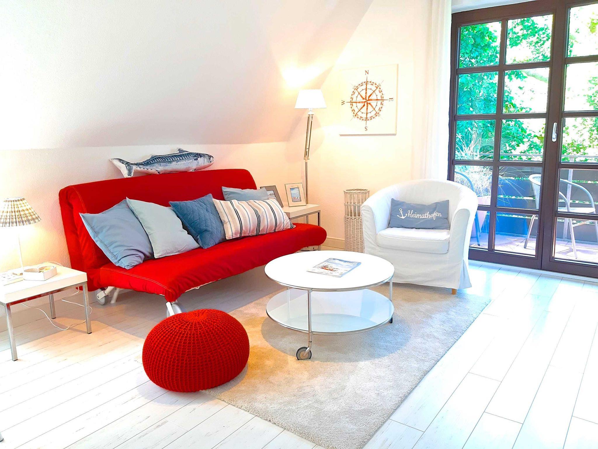 Das Appartement Seewolke N°1 im 1. Stock ist für max. 4 Personen; 2 Zimmer, moderne Top-Ausstattung, Süd-West-Balkon, kleines Duschbad, Küche, großer Flur.