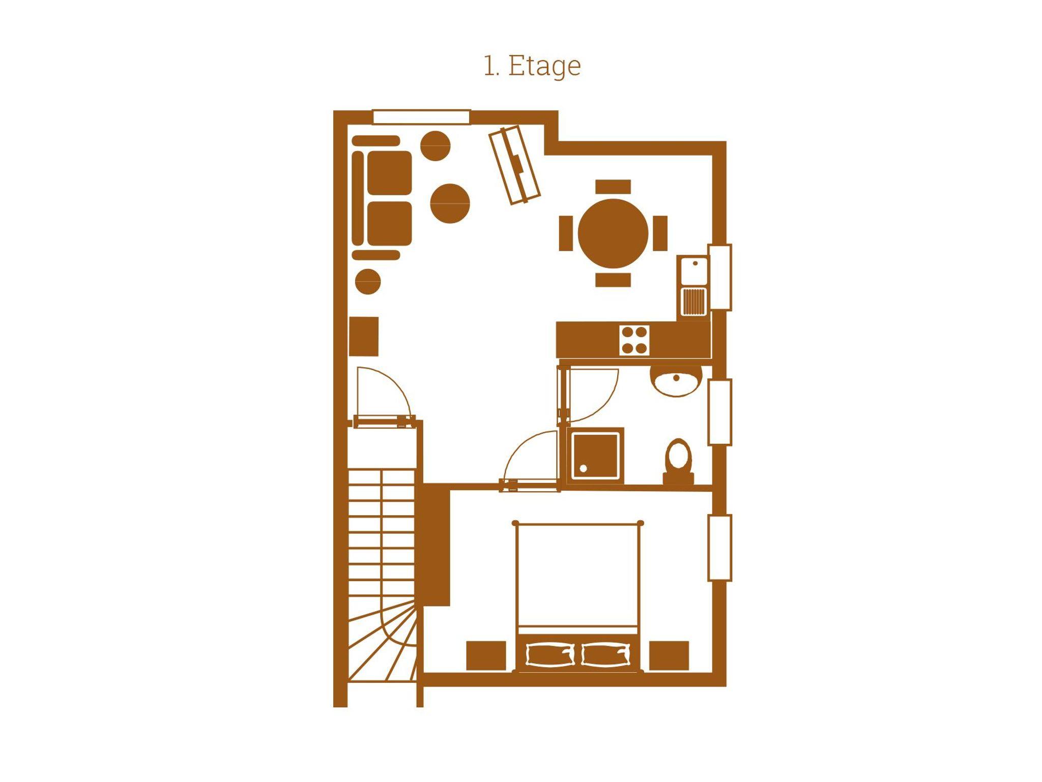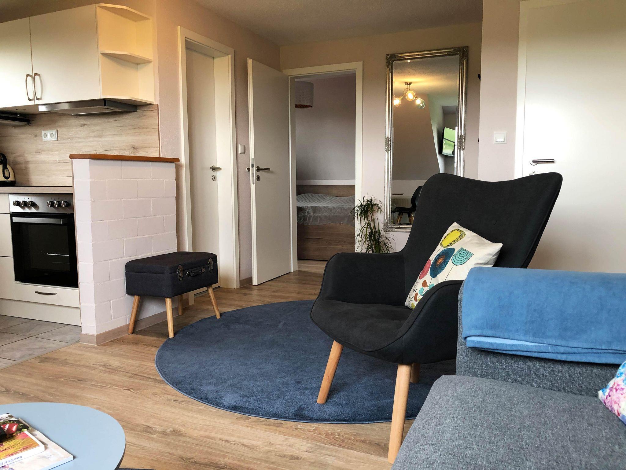 Der Kiebitz befindet sich im Obergeschoss des Ferienhauses und ist mit seinen 33 m² ideal für zwei Personen. Er verfügt neben einem gemütlichen und lichtdurchfluteten Wohn-, Küchen- und Essbereich über einen Schlafraum und ein Badezimmer. Durch das gemütliche Schlafsofa im Wohnraum eignet sich der Kiebitz auch bestens für drei Personen.