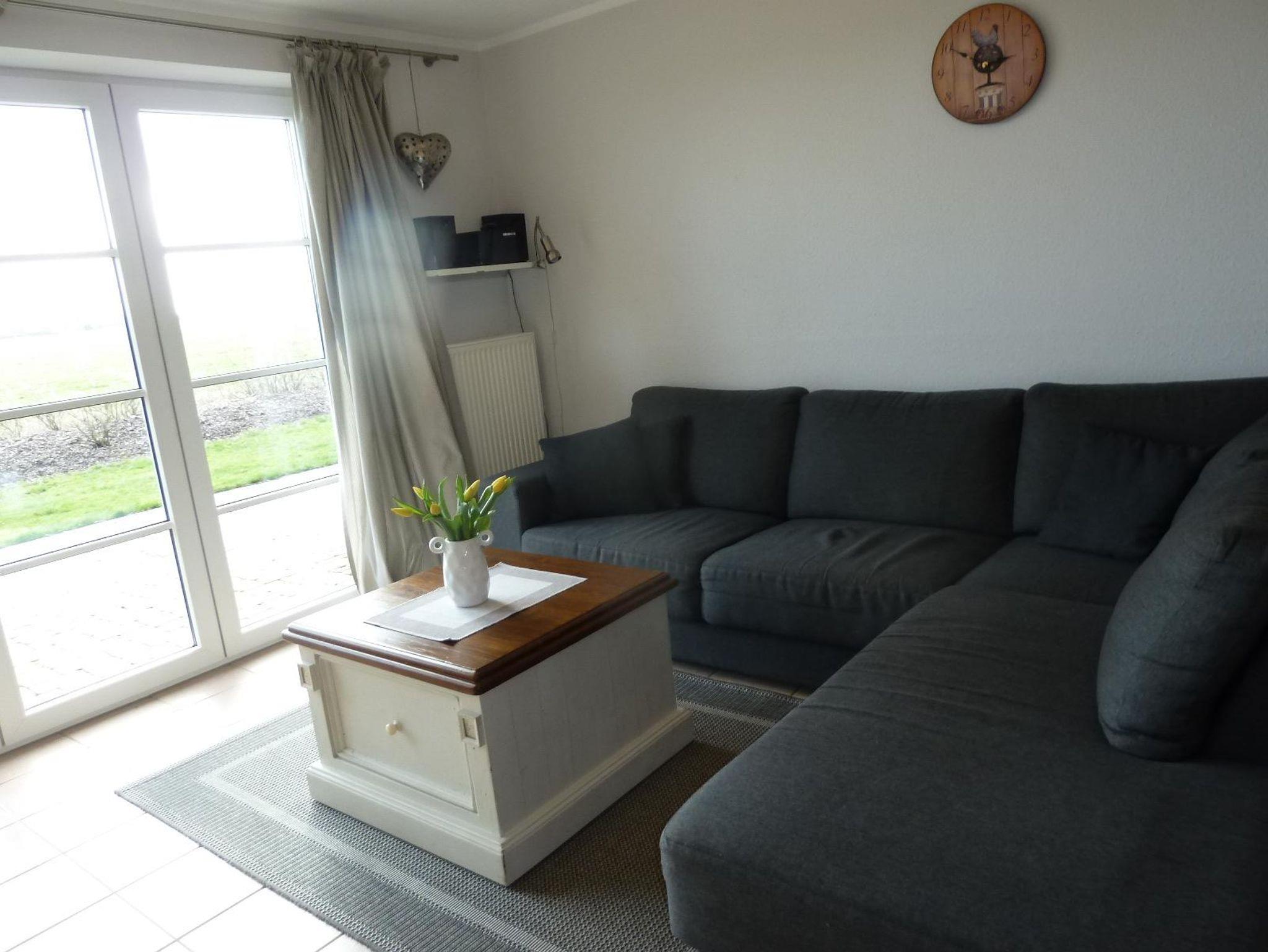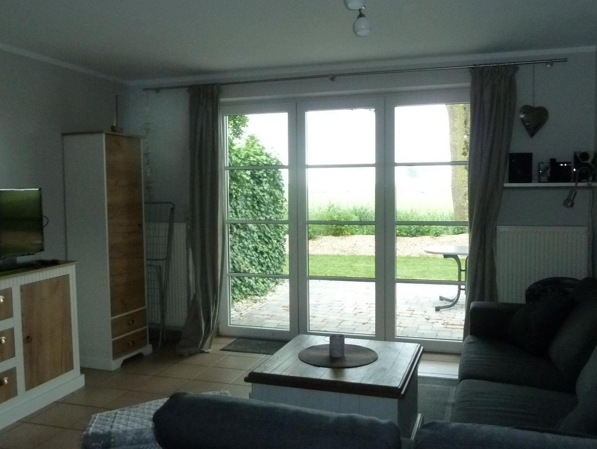 Die Wohnung liegt ebenerdig mit eigenem Eingang und Terrasse. Vom Wohnzimmer haben Sie einen direkten Zugang zur Südterrasse. Das Wohnzimmer ist durch die 3 bodentiefen Fenster lichtdurchflutet und Sie gemnießen einen herrlichen Panoramablick über Felder und Wiesen. Die kuschelige Couch lädt zum Verweilen ein. DVD-Player und die Stereoanlagesowie Spiele sorgen für Unterhaltung.