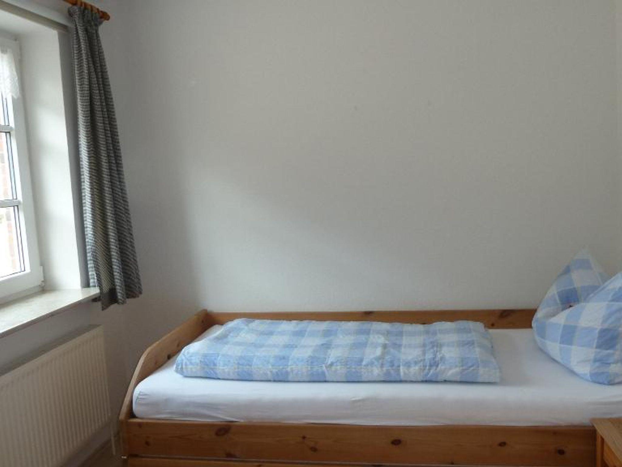 Der dritte Schlafraum ist mit einem erhöhten Bett ausgestattet. Hier fühlen Sich auch Oma oder Opa wohl.