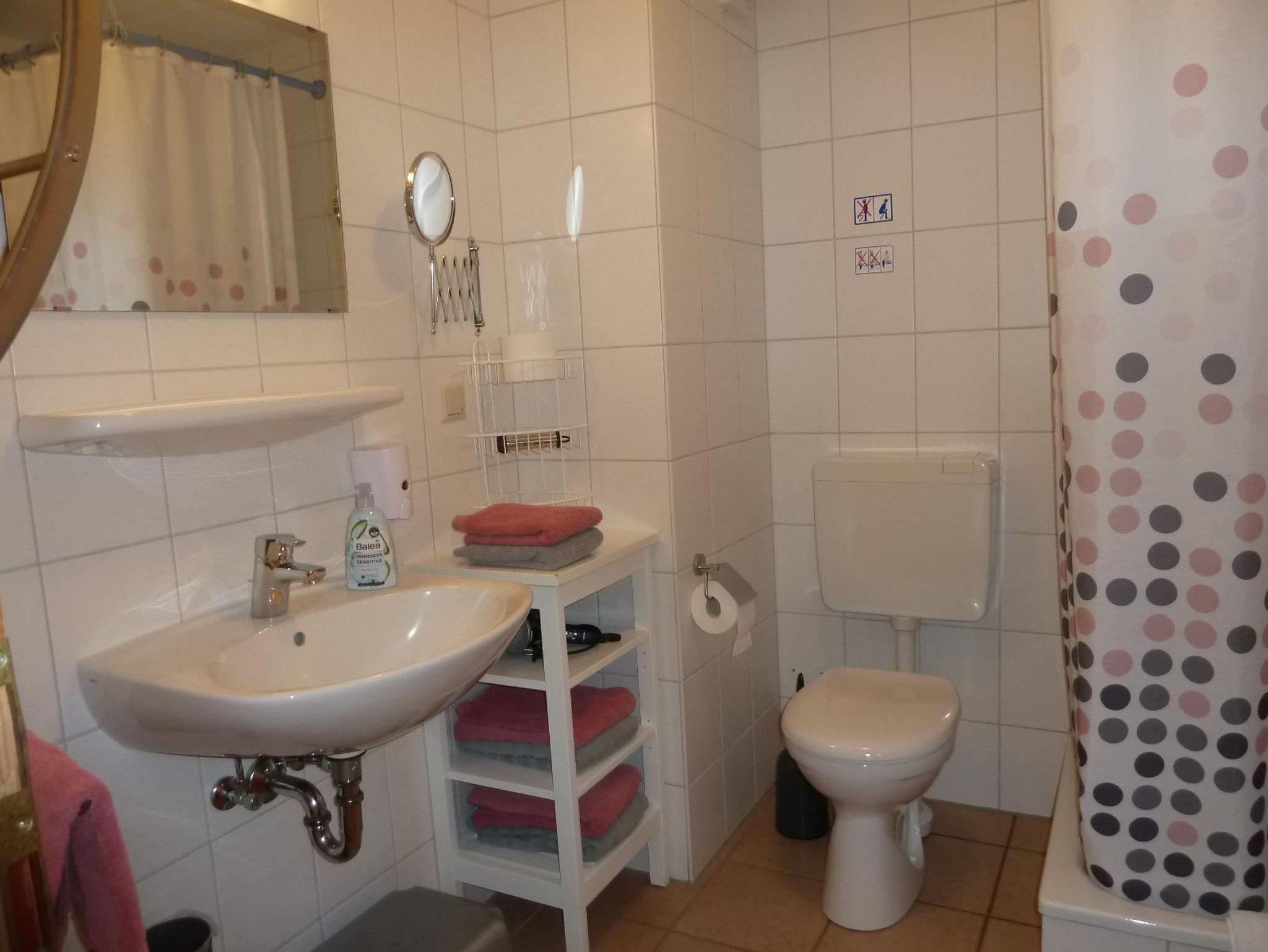 Das Bad mit Dusche verwöhnt Sie mit einer Fußbodenheizung.