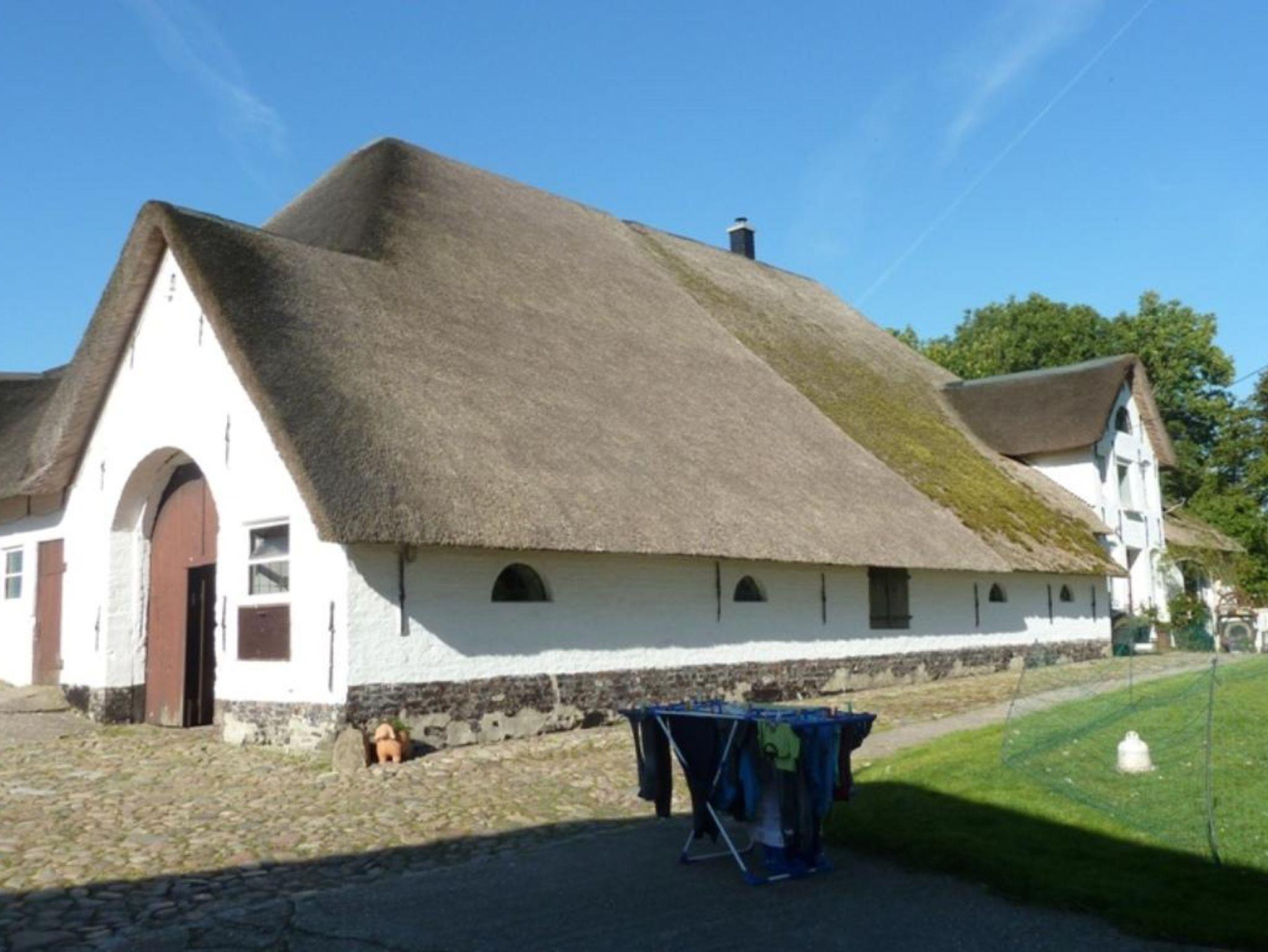 Nebenan liegt das Haupthaus, ein historischer ebenfalls reetgedeckter Haubarg.