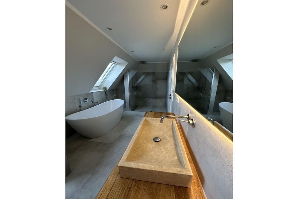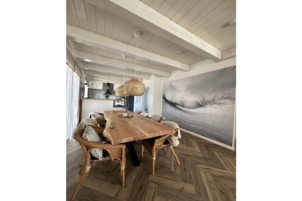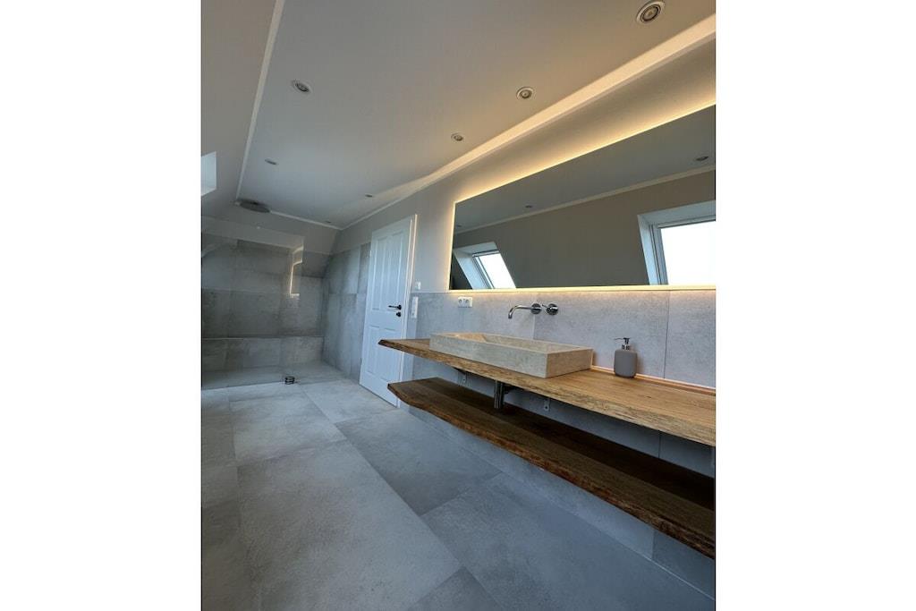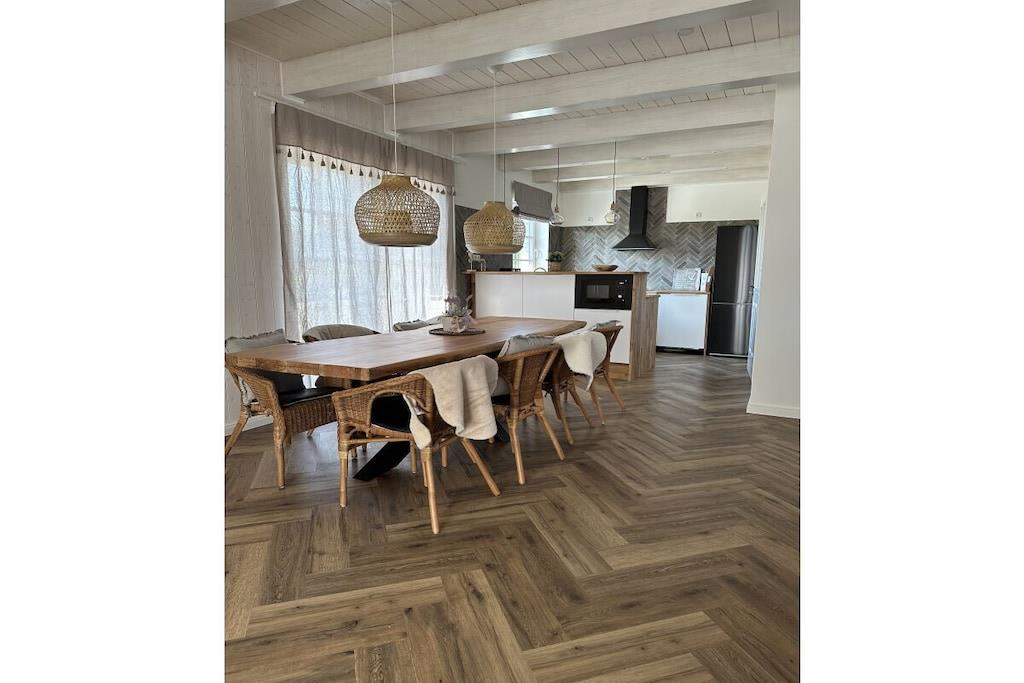 Velkommen til "Wikingerhuus", jeres idylliske feriehus lige ved Ejderdiget i Tönning. Denne kærligt designede og nyindrettede (2023) bolig tilbyder et rummeligt boligareal på 145 kvadratmeter til 1 til 10 personer, så I kan opleve en uforglemmelig ferie nær Vesterhavet. Feriehusets lyse stue lover en behagelig atmosfære til at tilbringe tid med familien, som par eller med venner. Den hyggelige sofa inviterer jer til at slappe af, spisebordet giver plads til hyggelige måltider, og det fuldt udstyrede køkken giver jer mulighed for at trylle kulinariske lækkerier frem. "Wikingerhuus" er ikke kun egnet til enkeltpersoner, men også til jeres firbenede venner, da kæledyr er velkomne. "Wikingerhuus" rummelighed afspejles også i udendørsområdet. På den store terrasse og i haven finder I et komfortabelt siddeområde, perfekt til at nyde de sidste solstråler. Der er også en grill til afslappende aftener udendørs. Et særligt højdepunkt er saunaen, som tilbyder en perfekt udsigt over haven – en oase af afslapning efter en begivenhedsrig dag ved Vesterhavet. Feriehuset tilbyder i alt tre soveværelser, hver med en boxmadras af høj kvalitet, og et værelse med en køjeseng. Et af soveværelserne ligger i stueetagen, hvilket sikrer handicapvenlig adgang. En charmerende vindeltrappe fører direkte til den åbne loftsstue, som også har en udtrækssovesofa, ideel til ekstra soveplads. Her finder du den afslappende søvn, du har brug for under din ferie ved Vesterhavet. Et badeværelse med bruseniche findes i stueetagen, mens det andet badeværelse på første sal er udstyret med bruser og et fritstående badekar. Bemærk venligst, at der kan opkræves ekstra gebyrer ved bookinger på mindre end 5 dage. Der opkræves en turistskat i Tönning. Besøgendes afgift er EURO2,20 pr. dag fra 15. maj til 30. september. Fra 1. april til 14. maj er besøgendes afgift EURO0,90 pr. dag. Nedsættelse af besøgendes afgift: Studerende og praktikanter, der er fyldt 18 år, betaler EURO0,90. For svært handicappede personer med en handicapvurdering på 50 % eller højere reduceres besøgendes afgift med 50 %. Dette gælder også for den obligatoriske ledsager.