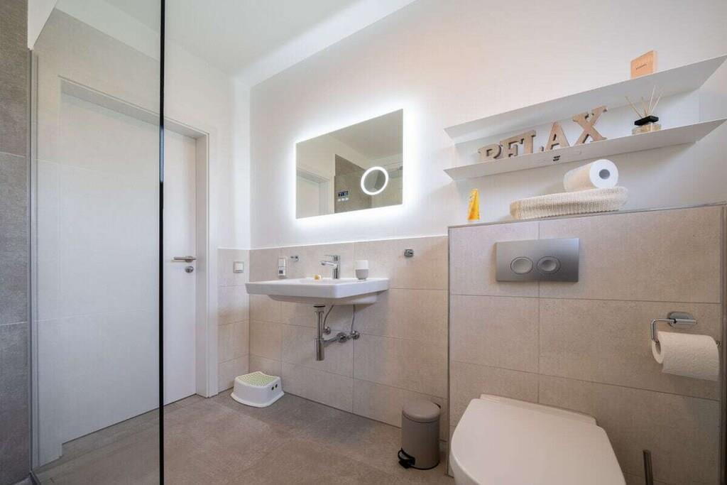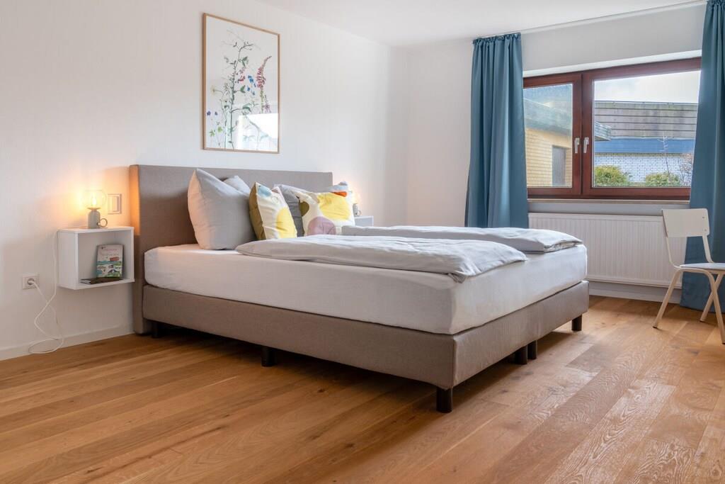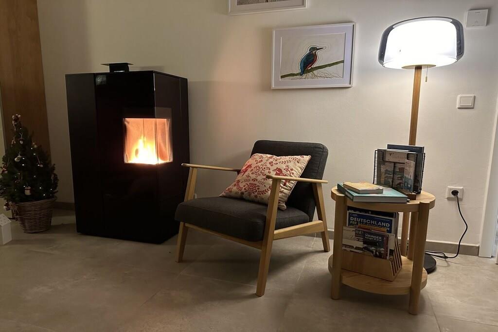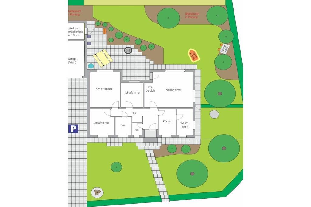 Unser barrierearmes Familien-Ferienhaus ist ebenerdig und bietet auf 105 qm Platz für 5 Personen. Vom hellen Flur gelangen Sie in das Elternschlafzimmer mit Boxspringbett, kleinem Arbeitsplatz, Babybett und großer Infrarotsauna, das Kinderzimmer für zwei Kinder mit vielen Spielmöglichkeiten, die voll ausgestattete Küche mit Wäscheraum, dem großen Wohn- und Esszimmer mit SmartTV, Playstation, Pellet-Kaminofen und das Bad mit Walk-In Regendusche und Fußbodenheizung. Der große neu gestaltete Garten mit teilüberdachter Terrasse, Strandkorb, Grill, Sandkasten,Schaukel- und Klettergerüst. Kräuterbeet und ausreichend Sitzmöglichkeiten lädt zum Relaxen und Spielen ein. E-Bikes können im abschließbaren Abstellraum geladen und abgestellt werden.