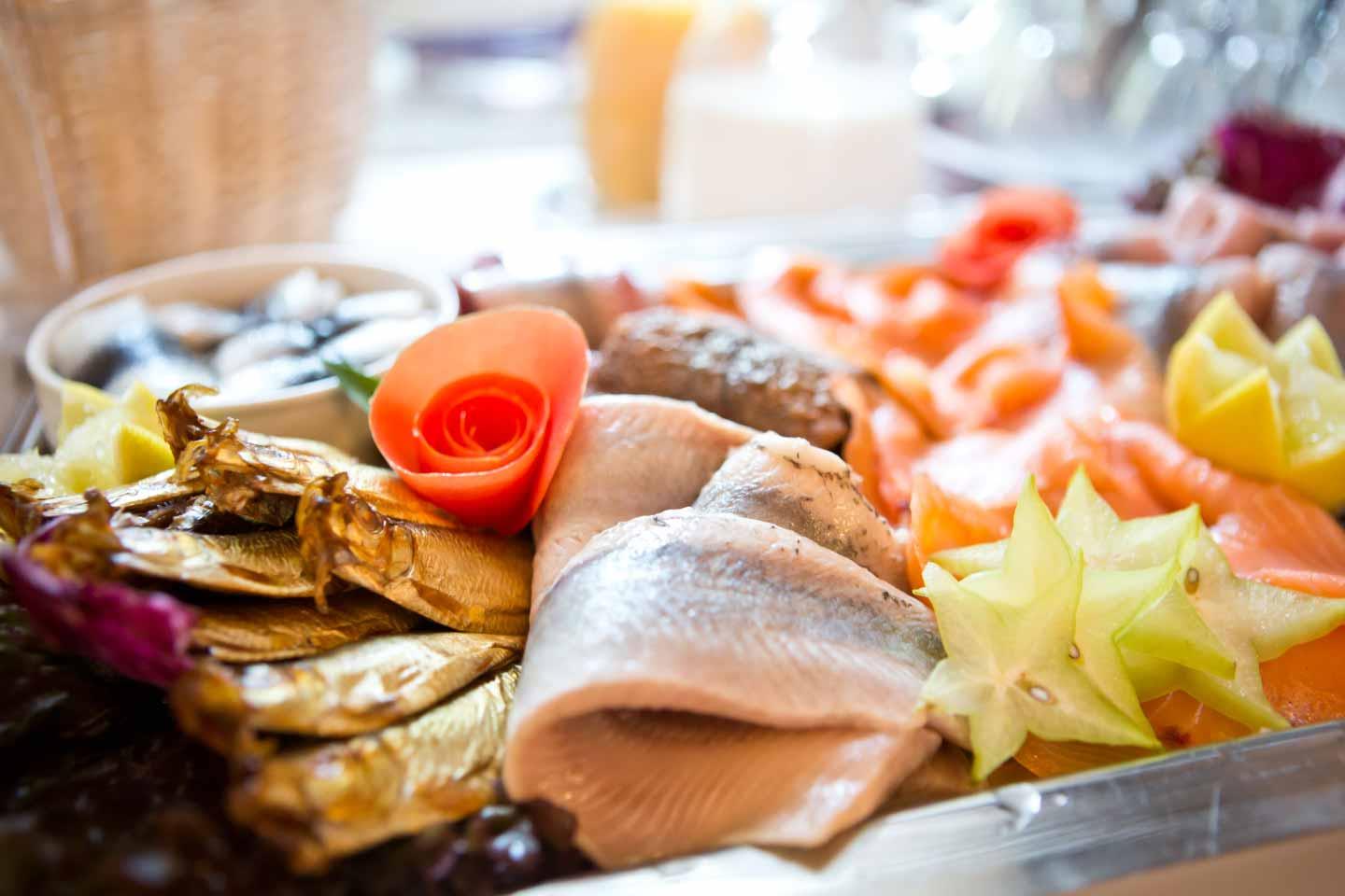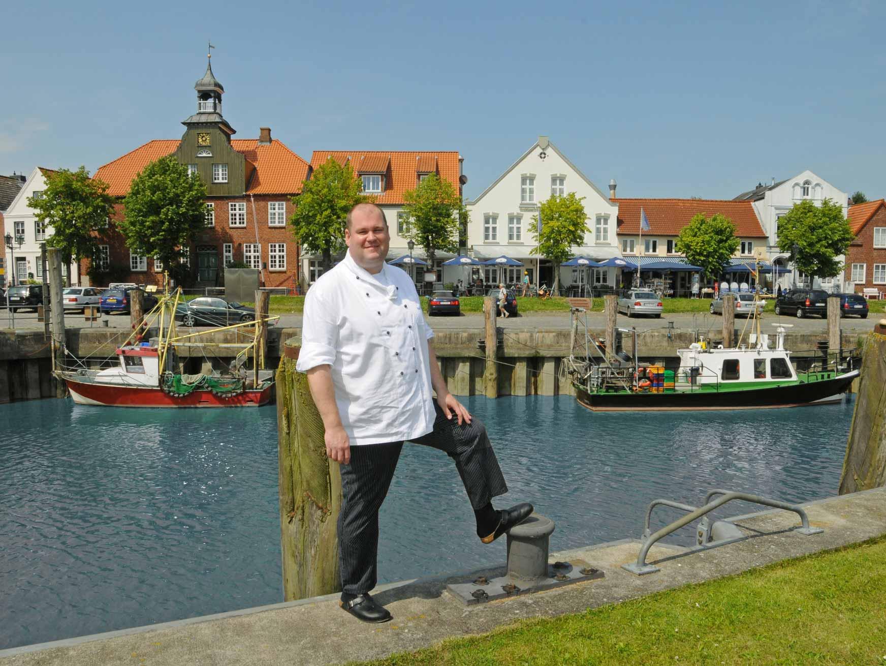 I vores restaurant kan jeres smagsløg nyde spændende gastronomiske retter, lækre hjemmebagte kager, friskfangede fisk direkte fra kutterne nede på kajen og masser af andre udsøgte måltider, altsammen kærligt tilberedt af kaptajn og køkkenchef Willi Peters. Om morgenen kan I glæde jer til den store morgenbuffet, der serveres med udsigt til havnen – en smukkere start på dagen fås ikke! På den overdækkede udendørsterrasse, hvor det traditionelle nordfriesiske køkken også kan nydes, er der udsigt til havnen, og i den hyggelige krostue/bar kan I afslutte dagen med lidt godt til ganen.