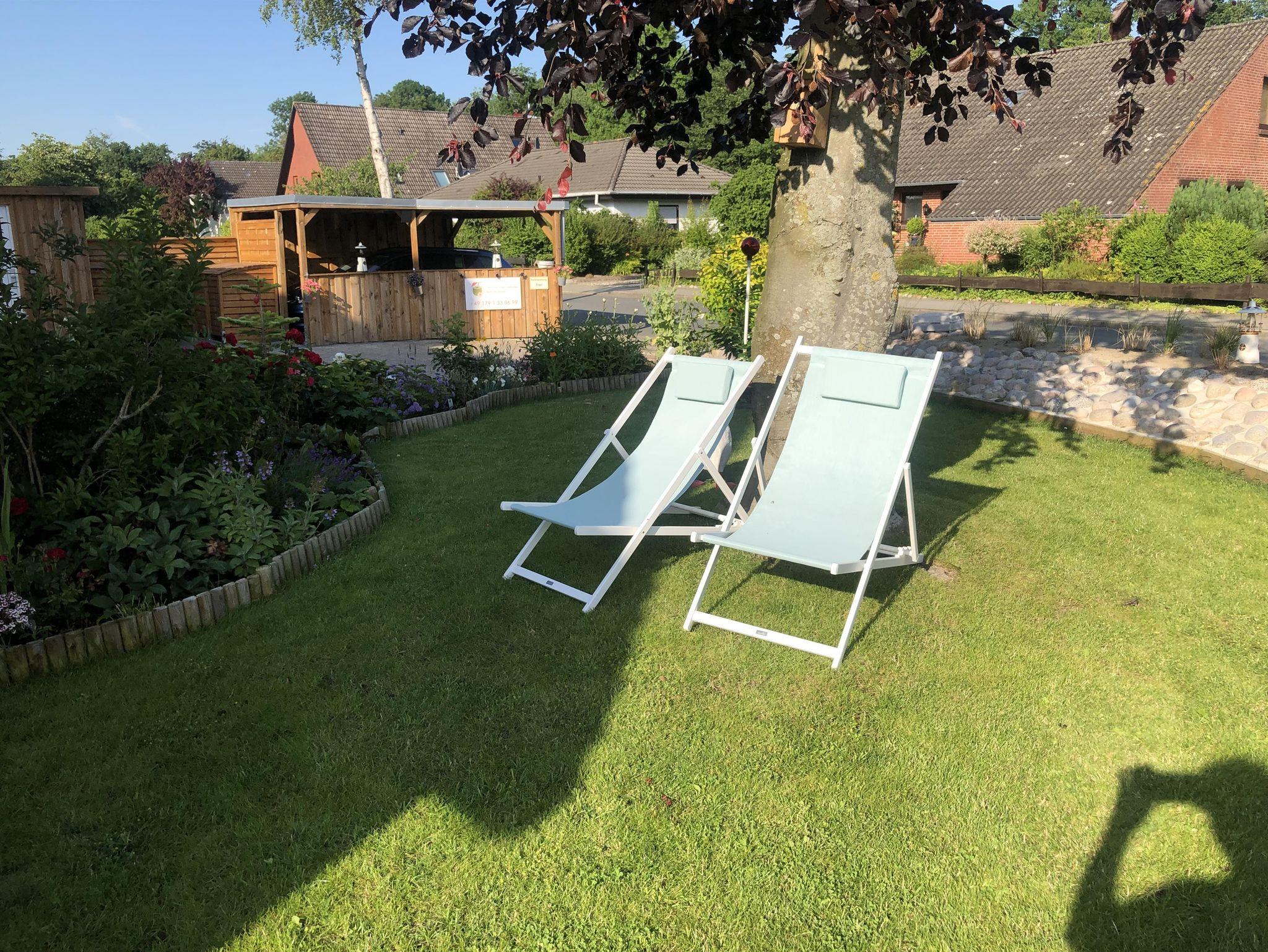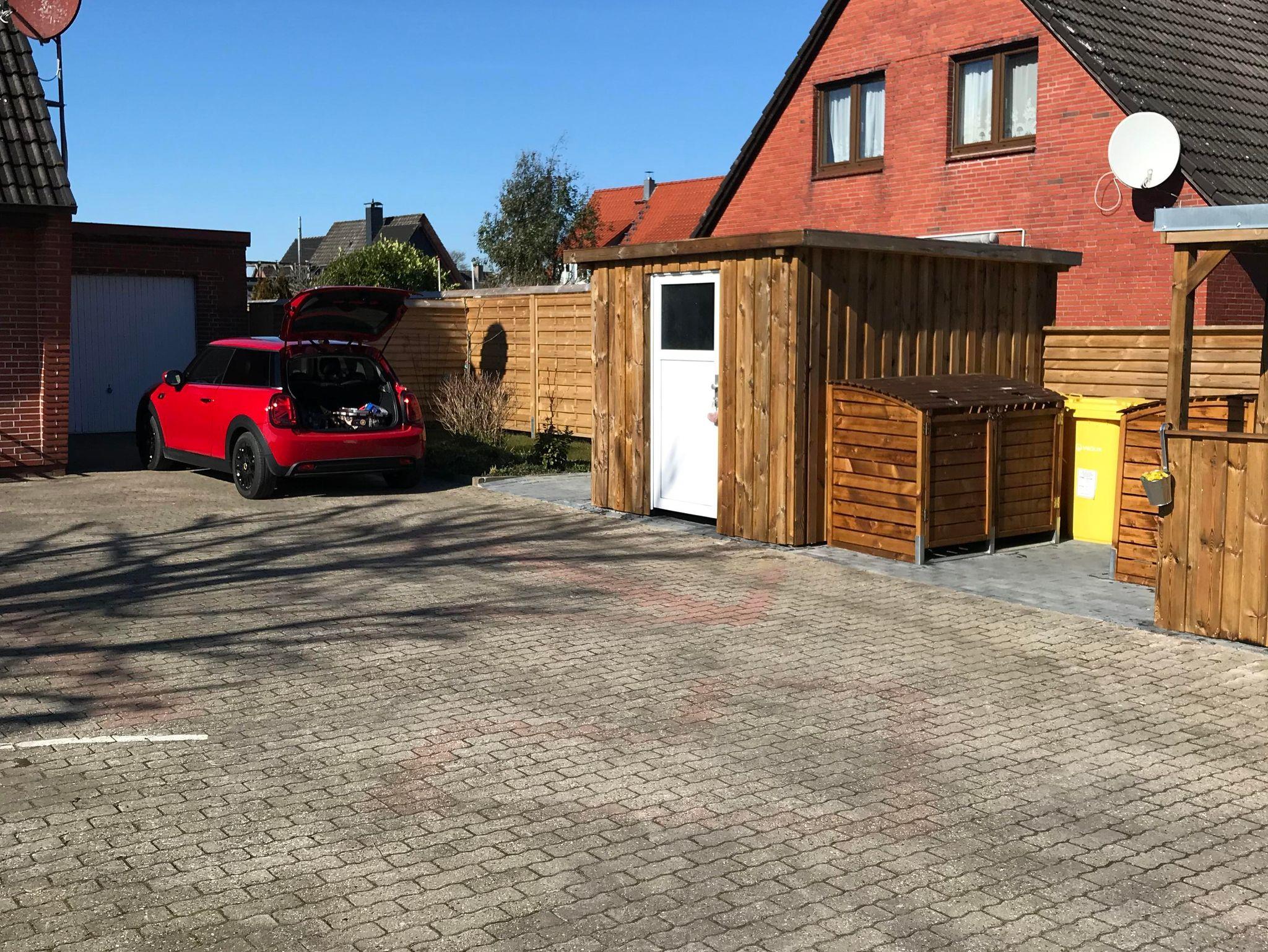 Ein KFZ Stellplatz, auch für Wohnmobile geeignet (Steckdose 220 V und Wasseranschluss vorhanden), eine Gartenterrasse mit Gartenmöbeln, auch Liegestühle und kleinem Grill auf Anfrage,sowie eine Fahrrad-Garage vor dem Haus. Wir haben auch 2 E-Bikes zum Ausleihen.