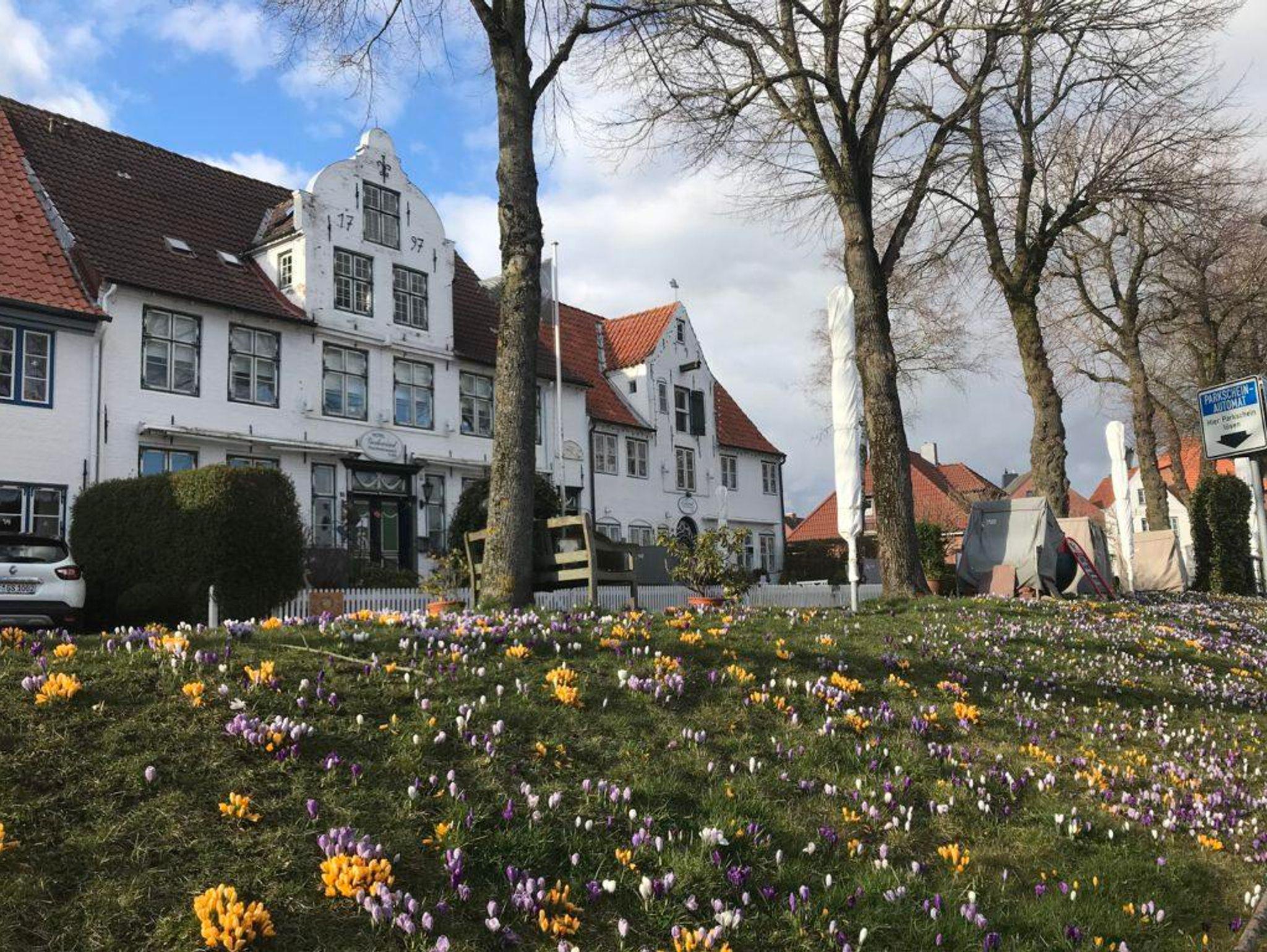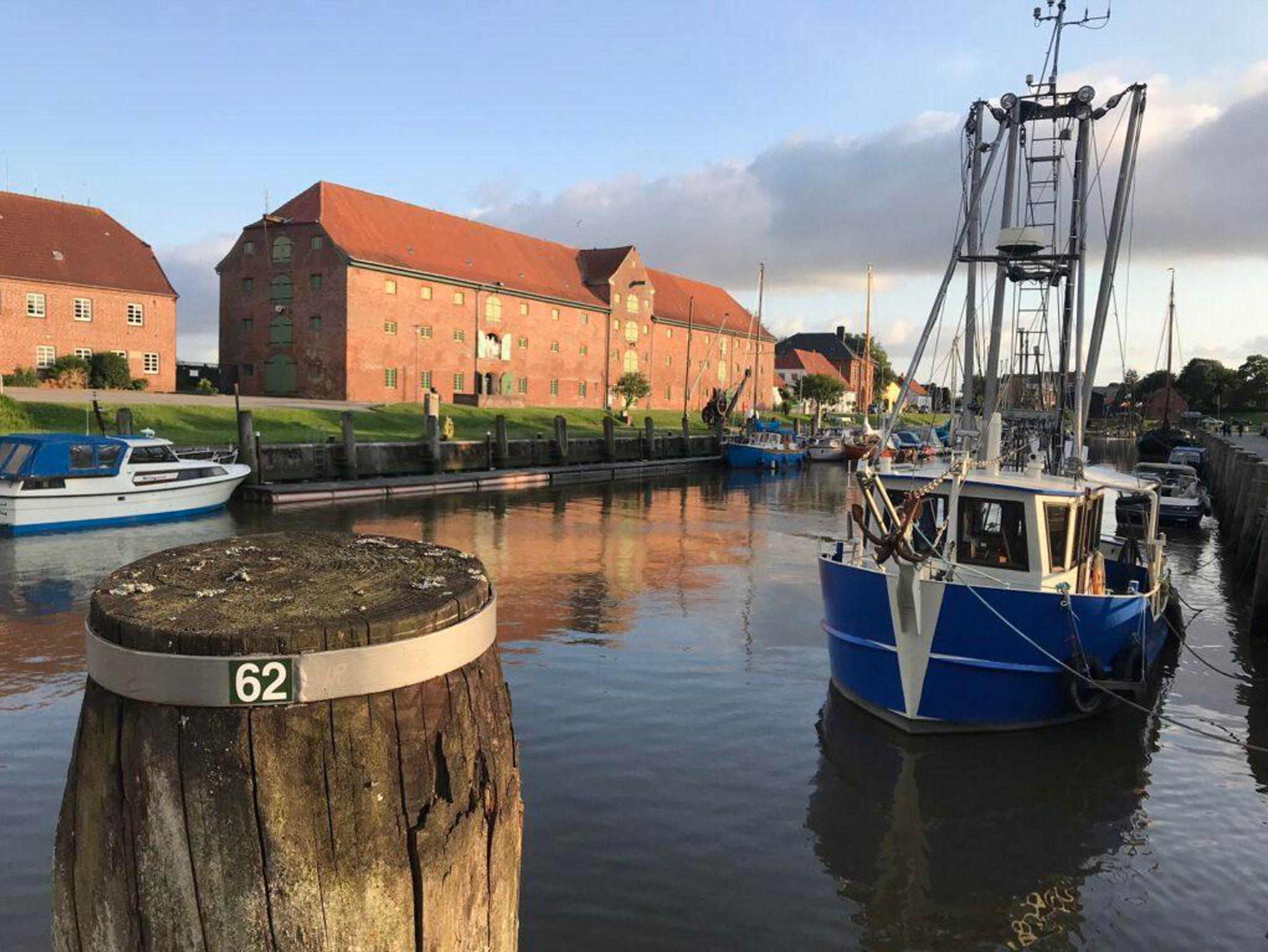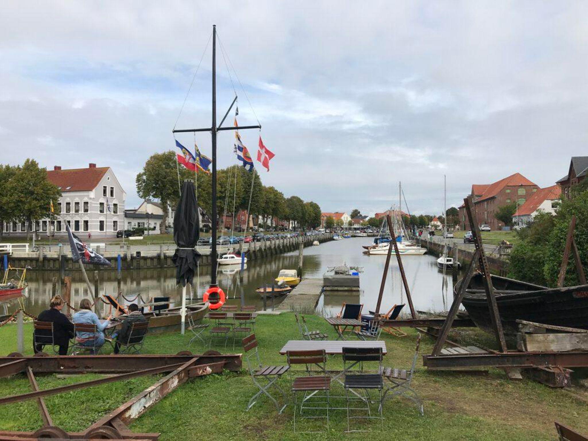 Die Wohnung liegt nur zwei Straßen vom Marktplatz mit Bäckerei, Apotheke, Restaurants, Schlosspark, Touristen-Information und der St. Laurentius-Kirche entfernt und es sind keine 10 Minuten zu Fuß zum pittoresken Hafen, 10 Minuten zur Badestelle an der Eider, 5 Minuten zum Bahnhof und 15 Fußminuten zum Multimar Wattzentrum. Zum nächsten Supermarkt sind es 3 Minuten zu Fuß.