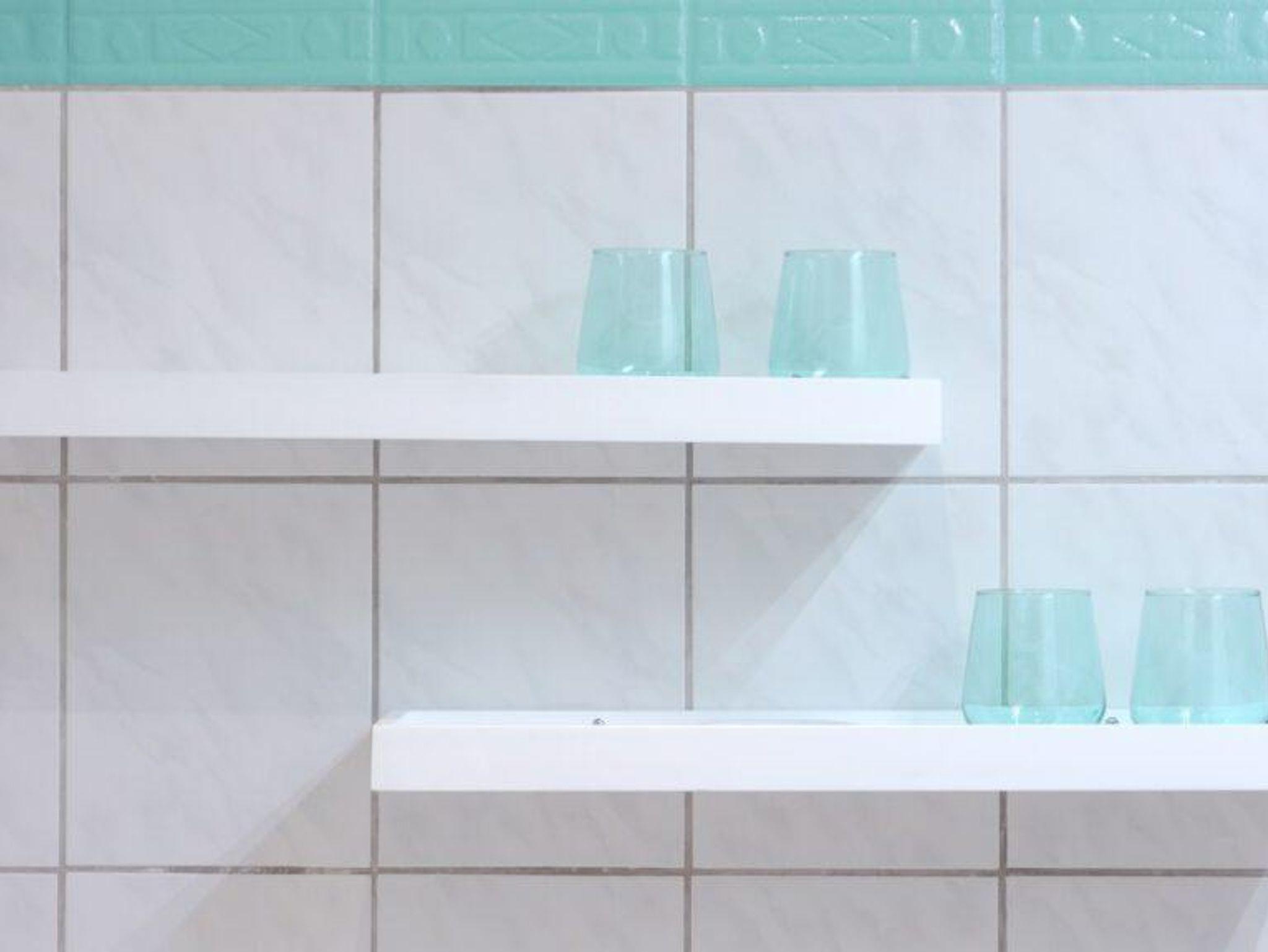 Toaster, Wasserkocher, Geschirrspülmaschine, Geschirr für 4 Personen, Nespresso-Maschine, Kaffeefiltermaschine.