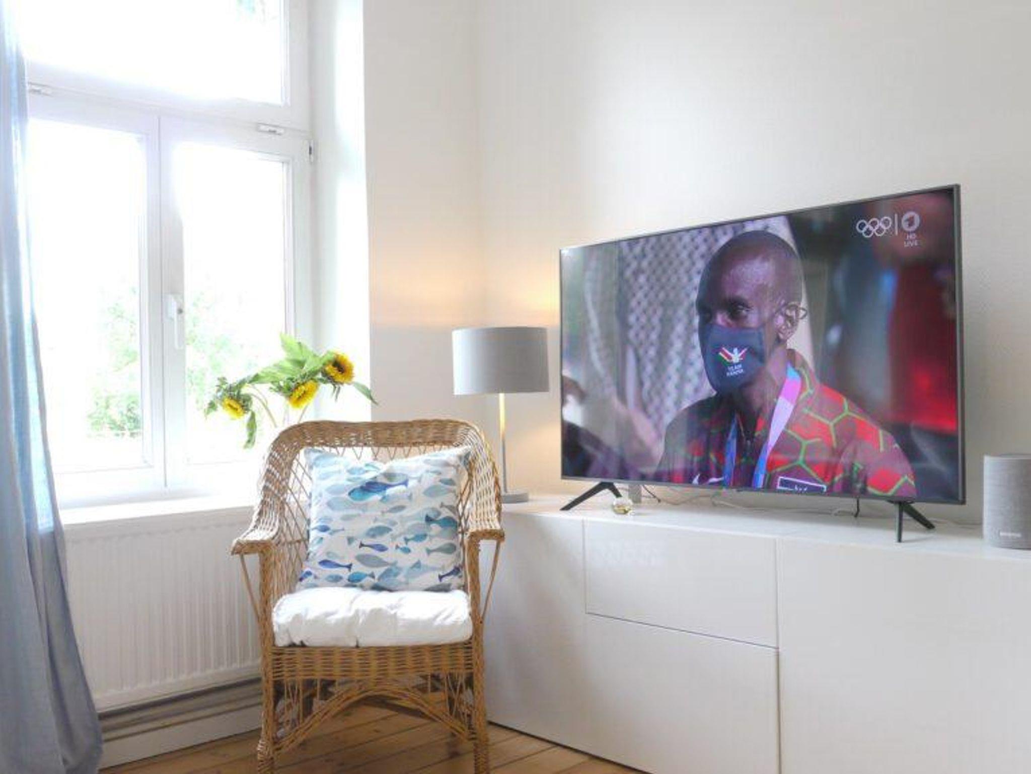55“-Fernseher mit Satelliten-Anschluss und Smart-TV für den eigenen Netflix-, Sky- oder Amazon-Prime-Account.
