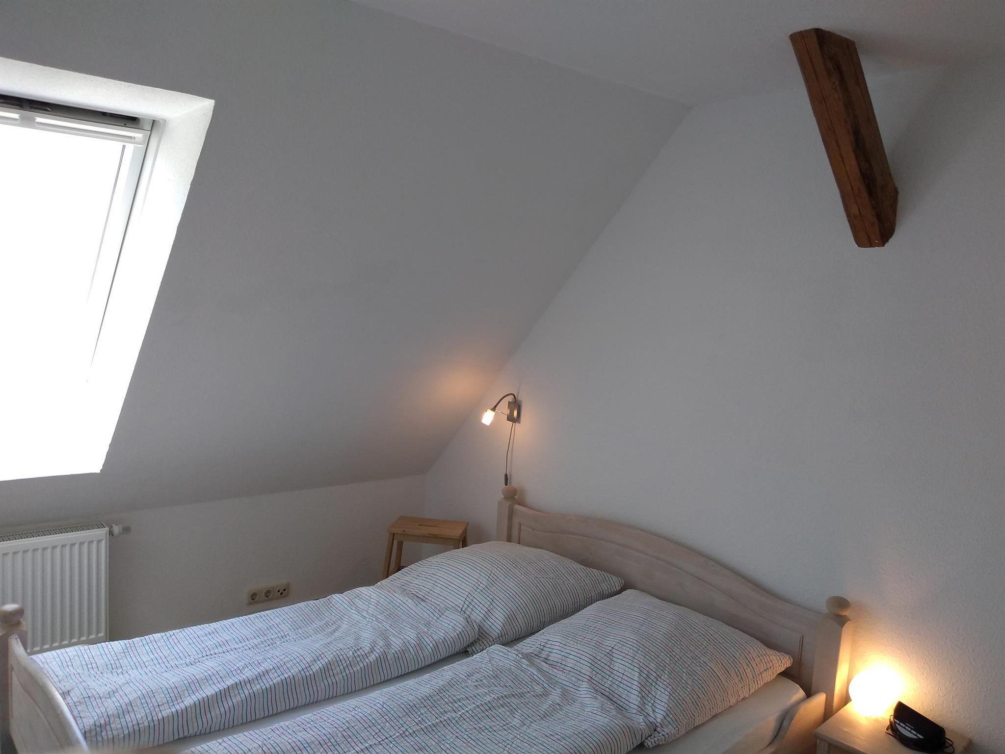 Die Ferienwohnung verfügt über einen großen, lichtdurchfluteten Wohnraum mit hoher Decke und sichtbarer Balkenlage und einen traumhaften Ausblick auf die Küstenlinie, dem Marschland und den alten Obstgarten. Der Wohnraum ist ausgestattet mit Sat-Farb-TV, DVD, Stereoanlage sowie einer Auswahl an Büchern und Spielen. Die offene Küche mit kleinem Tresen ist mit Geschirrspüler, Backofen, Ceranfeld, Kühlschrank, Gefriereinheit, Toaster, Kaffeemaschine, Wasserkocher und selbstverständlich ausreichend Geschirr und Zubehör ausgestattet. Die drei Schlafräume sind mit Doppelbett bzw. französischem Bett liebevoll hergerichtet. Das moderne Vollbad hat eine Eckbadewanne mit Panoramablick.