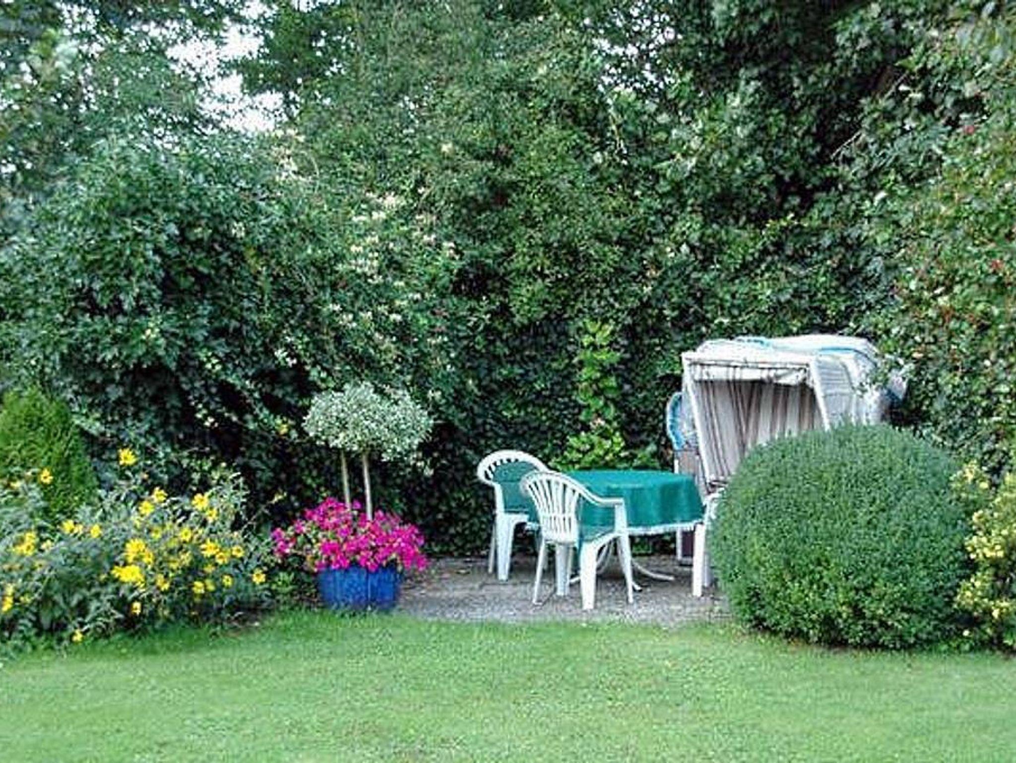 Ferienwohnung für 2-3 Personen im Erdgeschoß, ca. 40 qm. Wohnraum mit integrierter Küche, TV und Radio. Die Ferienwohnung wurde im Frühjahr 2010 komplett renoviert. Die Küche beinhaltet Backofen, Ceranfeld, Spülmaschine und eine Arbeitsplatte aus Granit und selbstverständlich Toaster, Kaffeemaschine, Mixer und Mikrowelle etc. Die Wohnung verfügt über 1 Schlafzimmer mit Doppelbett und 1 Badezimmer mit Duschkabine. Im Wohnzimmer steht darüber hinaus noch eine Schlafcouch für ein bis zwei weitere Personen zur Verfügung. Die Wohnung ist mit einem hochwertigen Holzfußboden (sibirische Eiche) ausgelegt. Bettwäsche und Handtücher sind inklusive. Kinderbett und Hochstuhl stehen kostenlos zur Verfügung (auf Anfrage). Zum Sonnen und Faulenzen gibt es separate, idyllisch gelegene Terrassen mit Strandkörben und Gartenmöbeln im großen Garten.