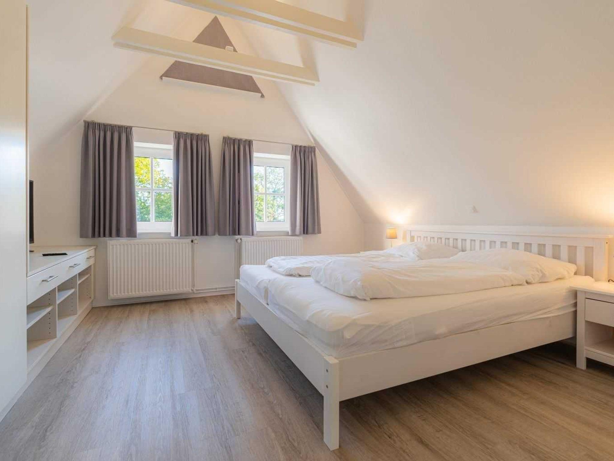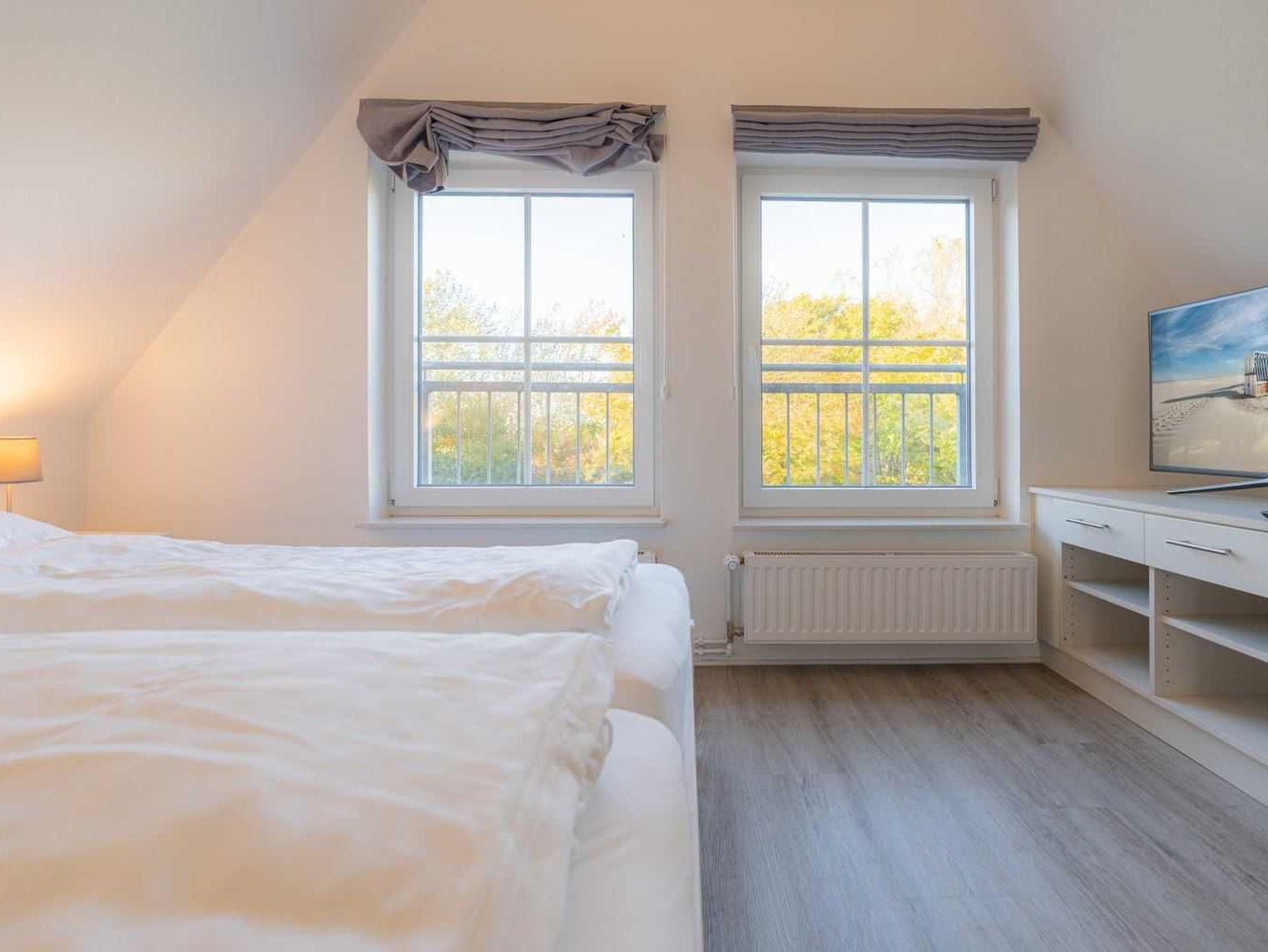 1. Schlafzimmer mit Doppelbett (2x 90x200cm) mit SMART-TV (Sat) und Einbaukleiderschrank.