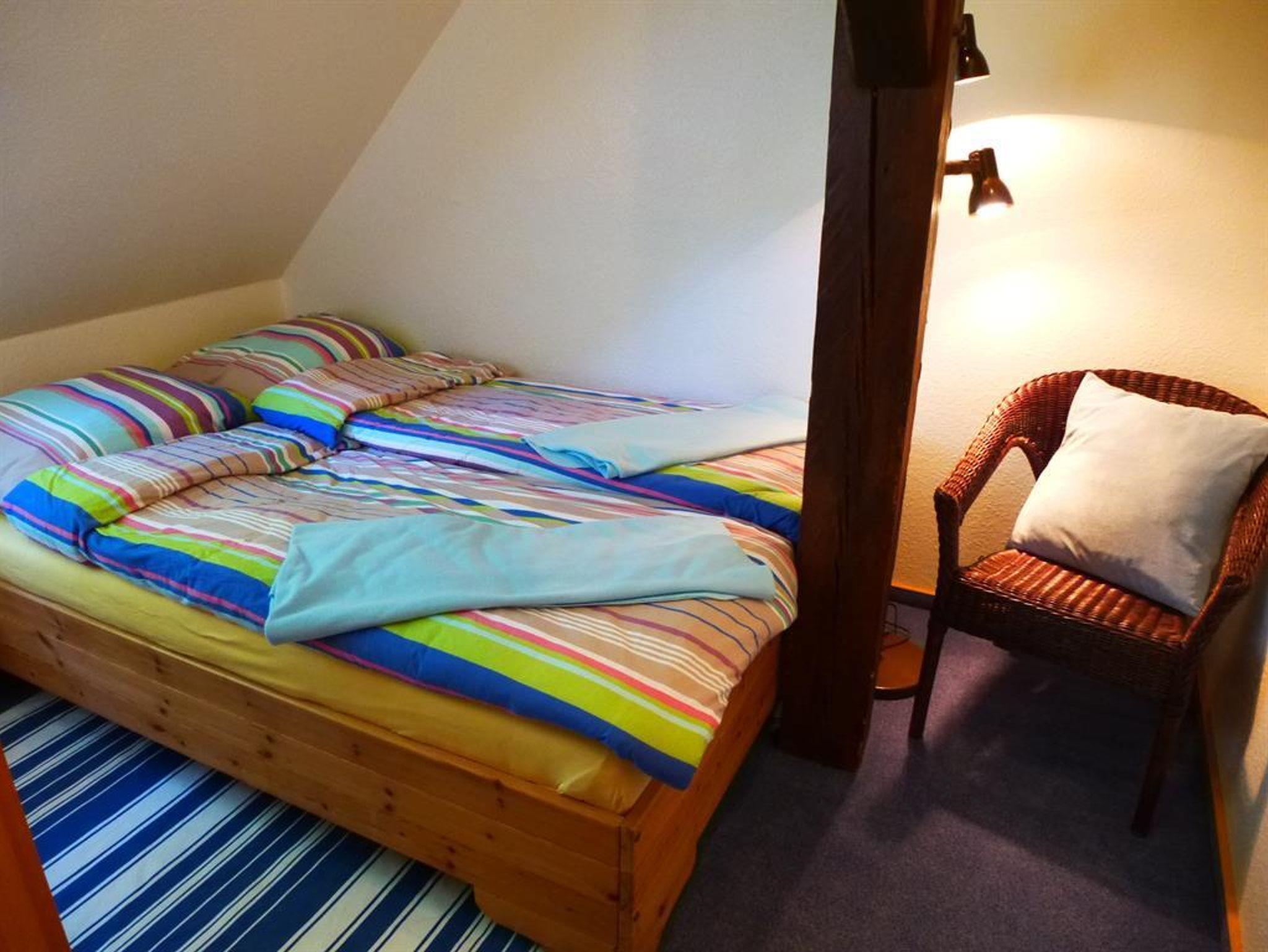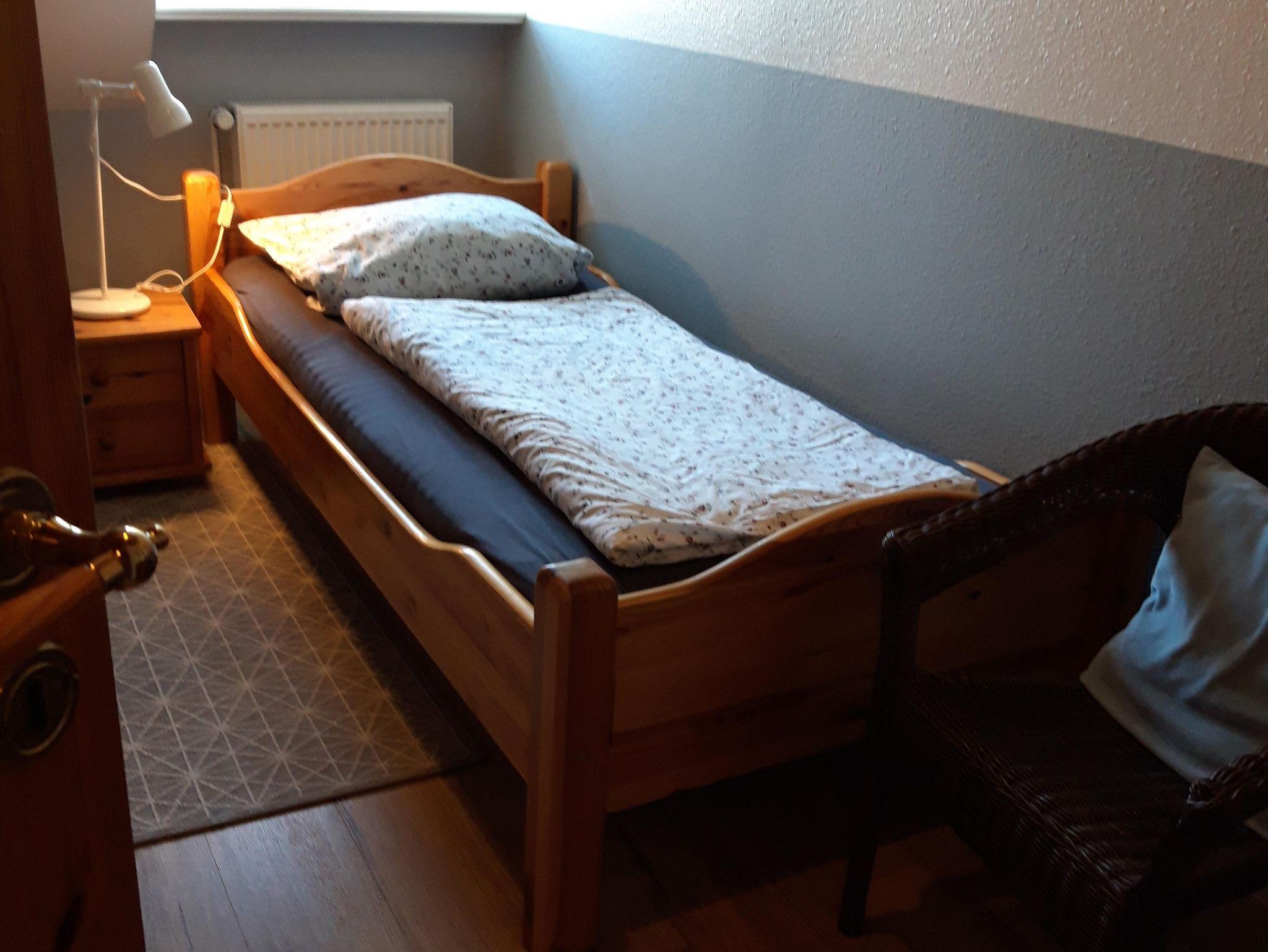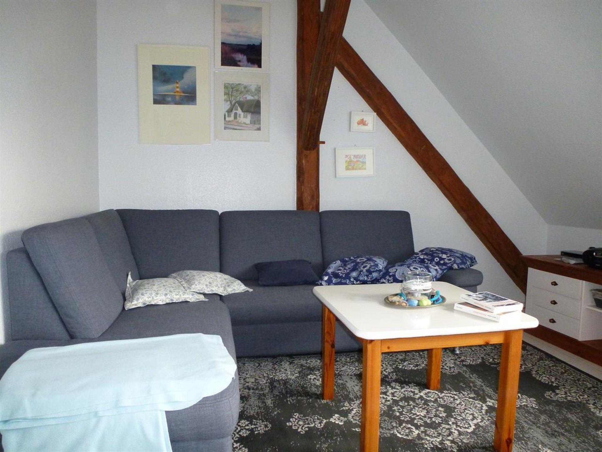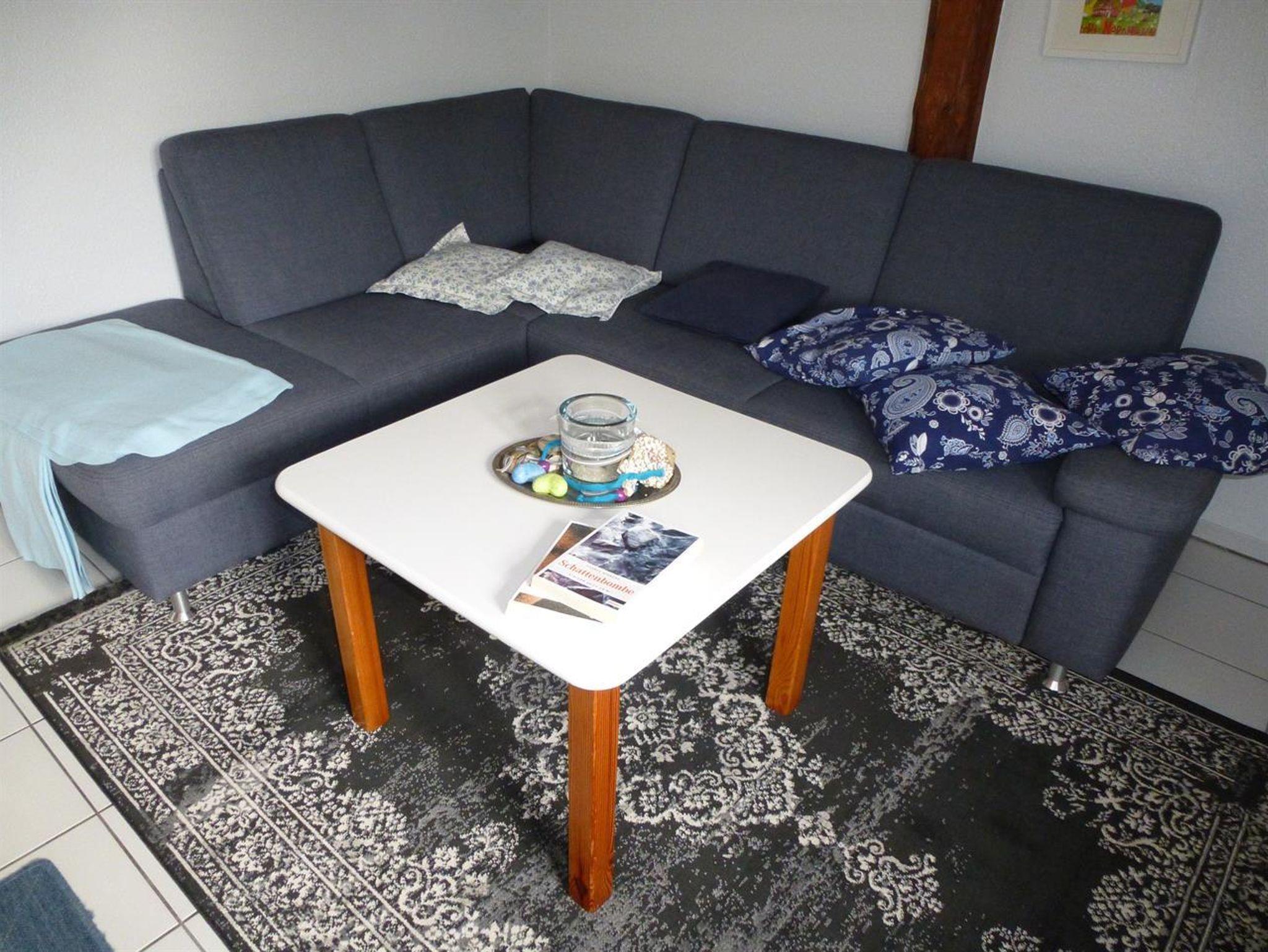 Die Wohnung in der 1. Etage besteht aus einem Wohn/-Esszimmer (gefliest) mit Sat-TV, CD-Player und Ecksofa. Die Küche ist komplett ausgestattet: Backofen mit Ceranfeld, Abzugshaube, Kühlschrank mit Gefrierfach, Geschirrspülmaschine, ausreichend Geschirr, Toaster, Kaffeemaschine mit Thermoskanne, Wasserkocher, Mixer.