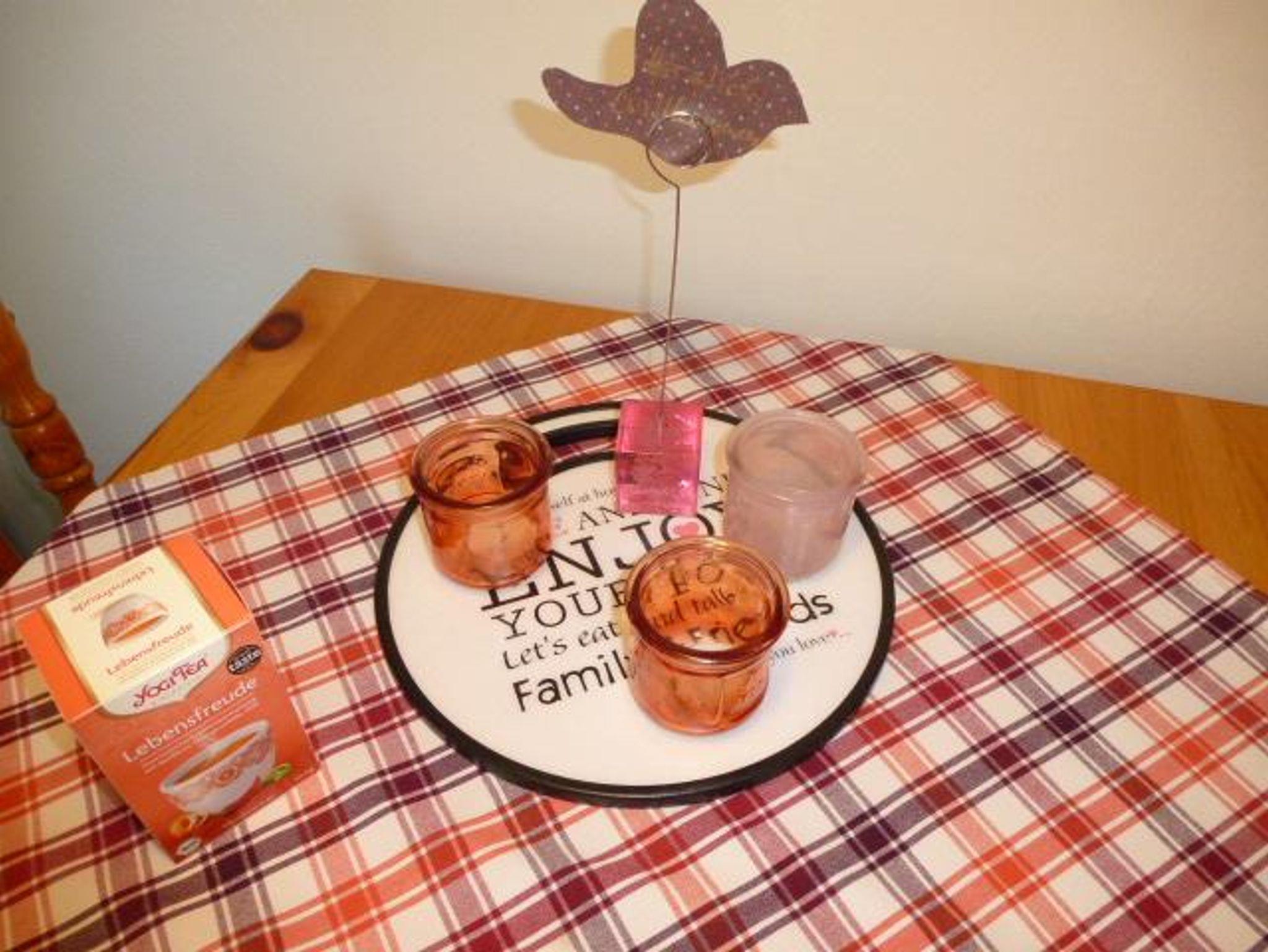 Die ebenerdige Wohnung besteht aus einem Wohn/Schlafzimmer (gefliest mit Fußbodenerwärmung) mit Doppelbett, Sat-TV, CD-Player und Ecksofa. Die Küche ist komplett ausgestattet: Fußbodenerwärmung, Boschbackofen mit Ceranfeld, Abzugshaube, Kühlschrank mit Gefrierfach, Geschirrspülmaschine, ausreichend Geschirr, Toaster, Kaffeemaschine mit Thermoskanne, Wasserkocher, Mixer.
