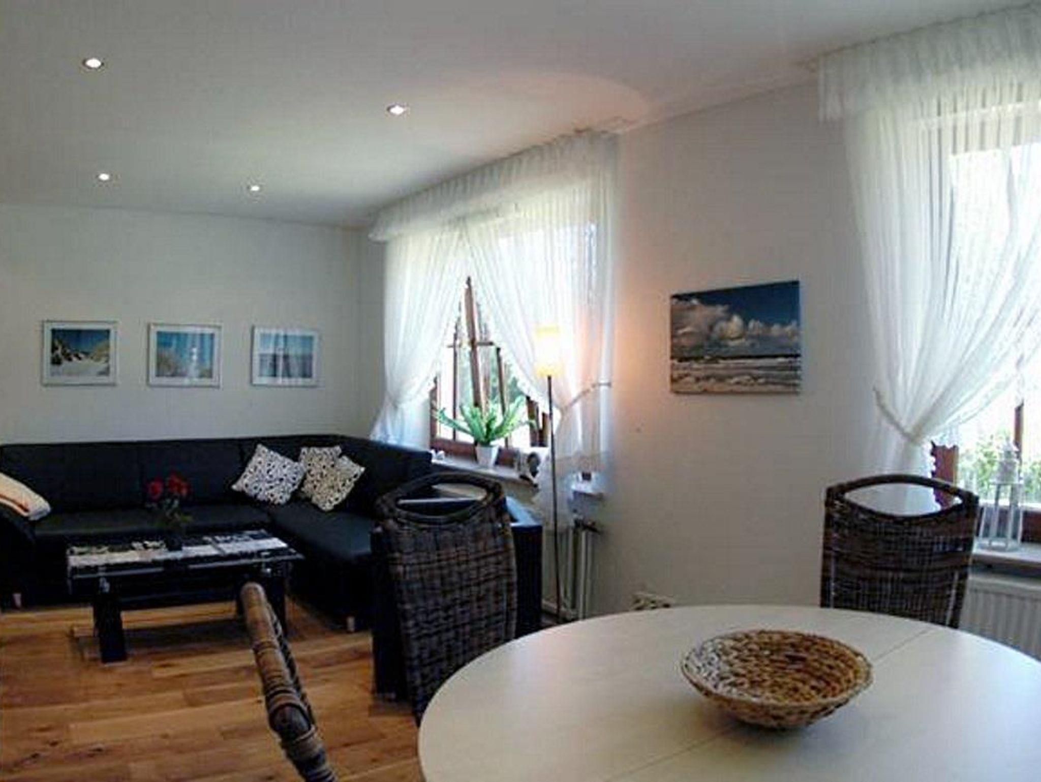 2009 neu ausgestattete 45 qm große Ferienwohnung im Erdgeschoß für bis zu 4 Personen. Der helle Wohnraum verfügt über eine moderne Couchgarnitur (inklusive ausziehbarer Schlafcouch), eine Schrankwand mit ausklappbaren Schrankbett und Flachbild-TV, CD-Radio, DVD-Player und einen Esstisch mit entsprechenden Stühlen. Das Schlafzimmer beinhaltet ein Doppelbett, einen großen Kleiderschrank und eine Kommode. Die neue Küche ist ausgestattet mit Mikrowelle, Toaster, Kaffeemaschine, Wasserkocher, Herd mit Backofen und Ceranfeld, Spülmaschine etc. Die komplette Wohnung ist mit hochwertigen Holzdielen ausgelegt. Das neue maritime Duschbad beinhaltet eine Duschkabine. Zum Sonnen und Faulenzen gibt es separate, idyllisch gelegene Terrassen mit Strandkörben und Gartenmöbeln im großen, gepflegten Garten. Bettwäsche und Handtücher sind inklusive. Kinderbett und Hochstuhl stehen kostenlos zur Verfügung (auf Anfrage).