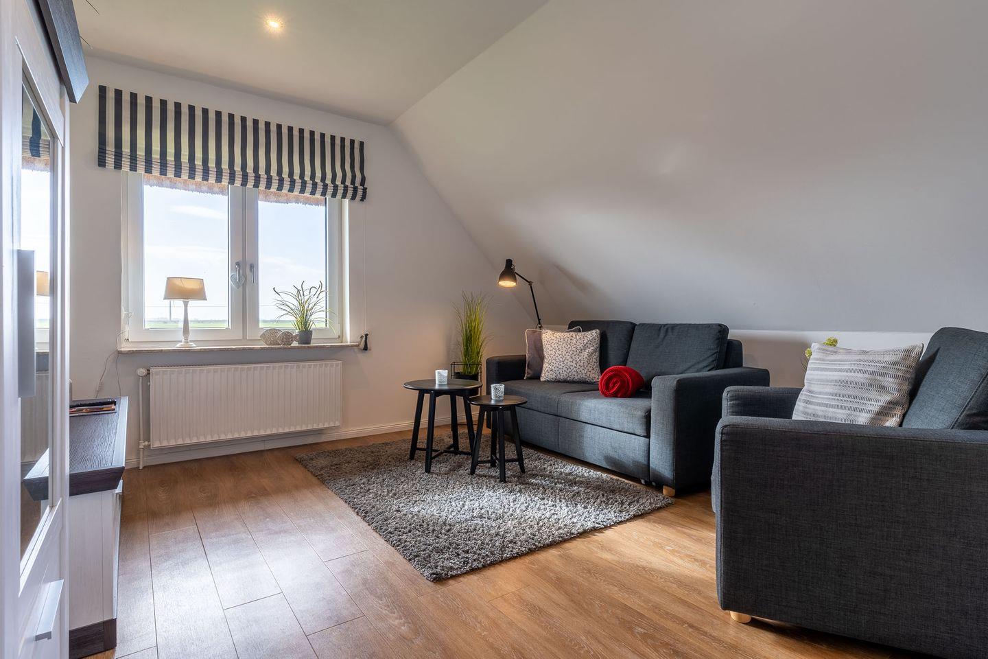 Wenn Sie nach einer modernen und stilvollen Ferienwohnung in einer atemberaubenden Umgebung suchen, dann ist die 2-Zimmer Dachgeschoss-Ferienwohnung im Tümlauer Koog die perfekte Wahl für Sie.