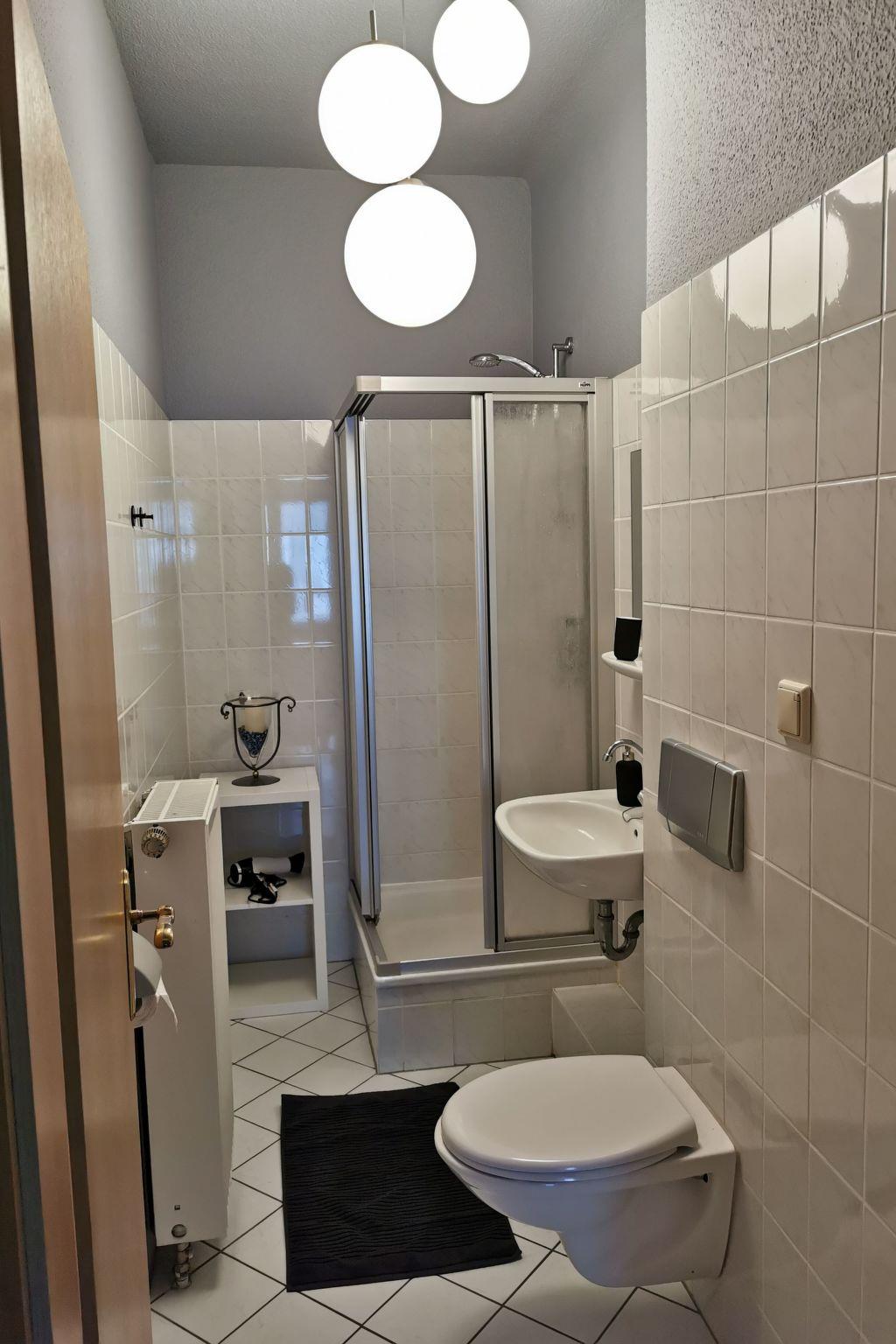The flat is fully furnished and equipped with curtains. A kitchen is available, which is equipped with a new kitchen, dishwasher and refrigerator. In addition to a nice living room, your new flat has a bathroom with shower, 1 children's room and 1 bedroom, and is heated by gas central heating, with laminate flooring, tiles and carpet.