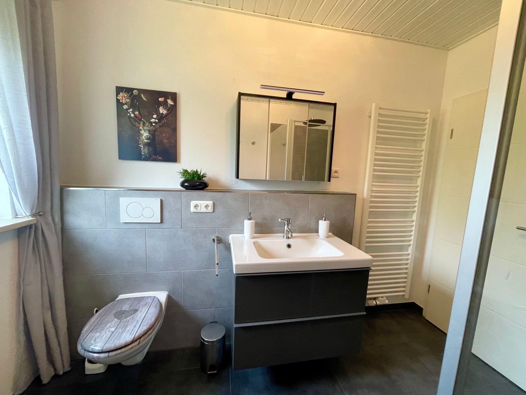 • ein helles Bad mit Dusche/Badewanne bzw. Dusche mit Waschmaschine