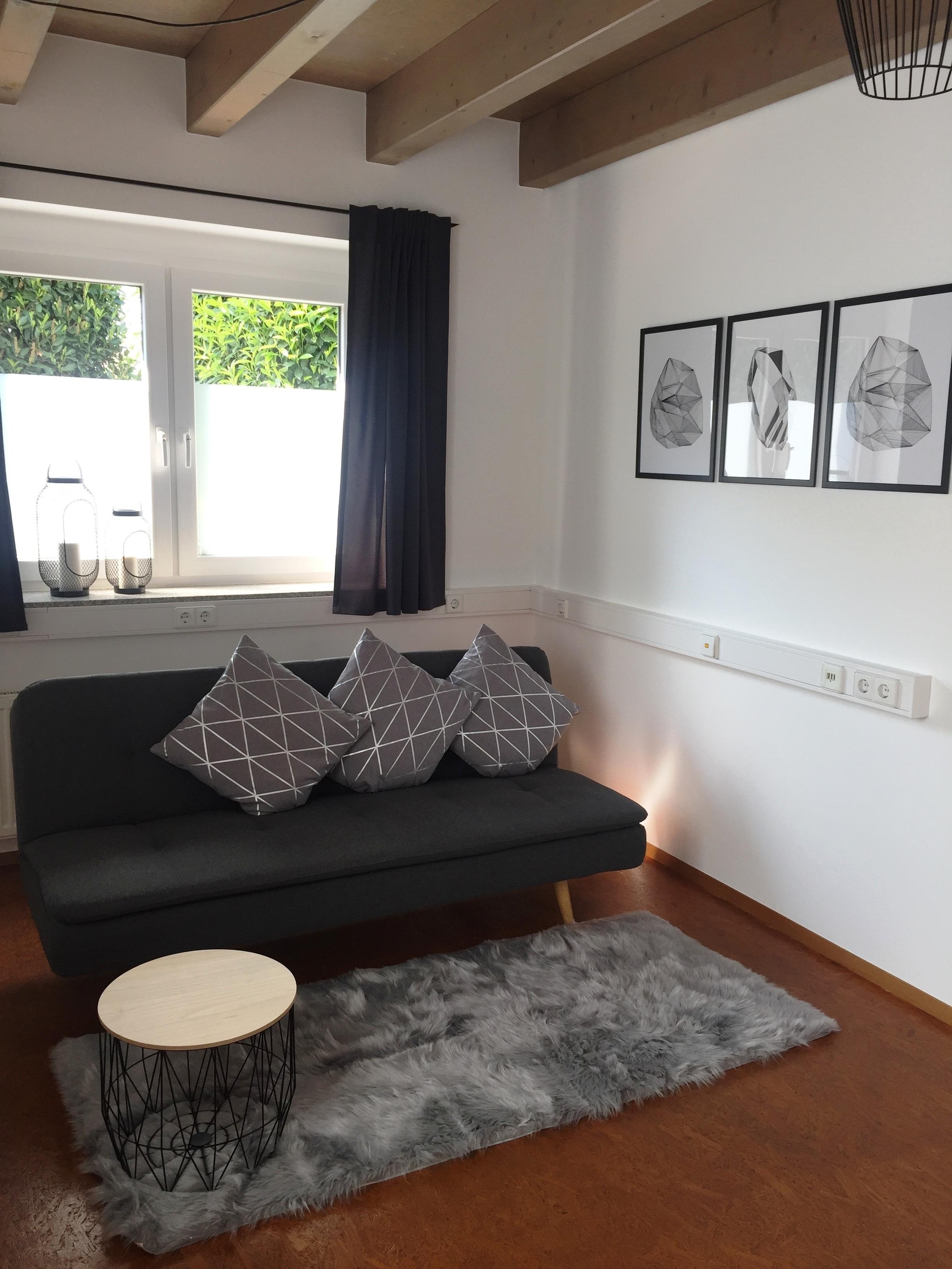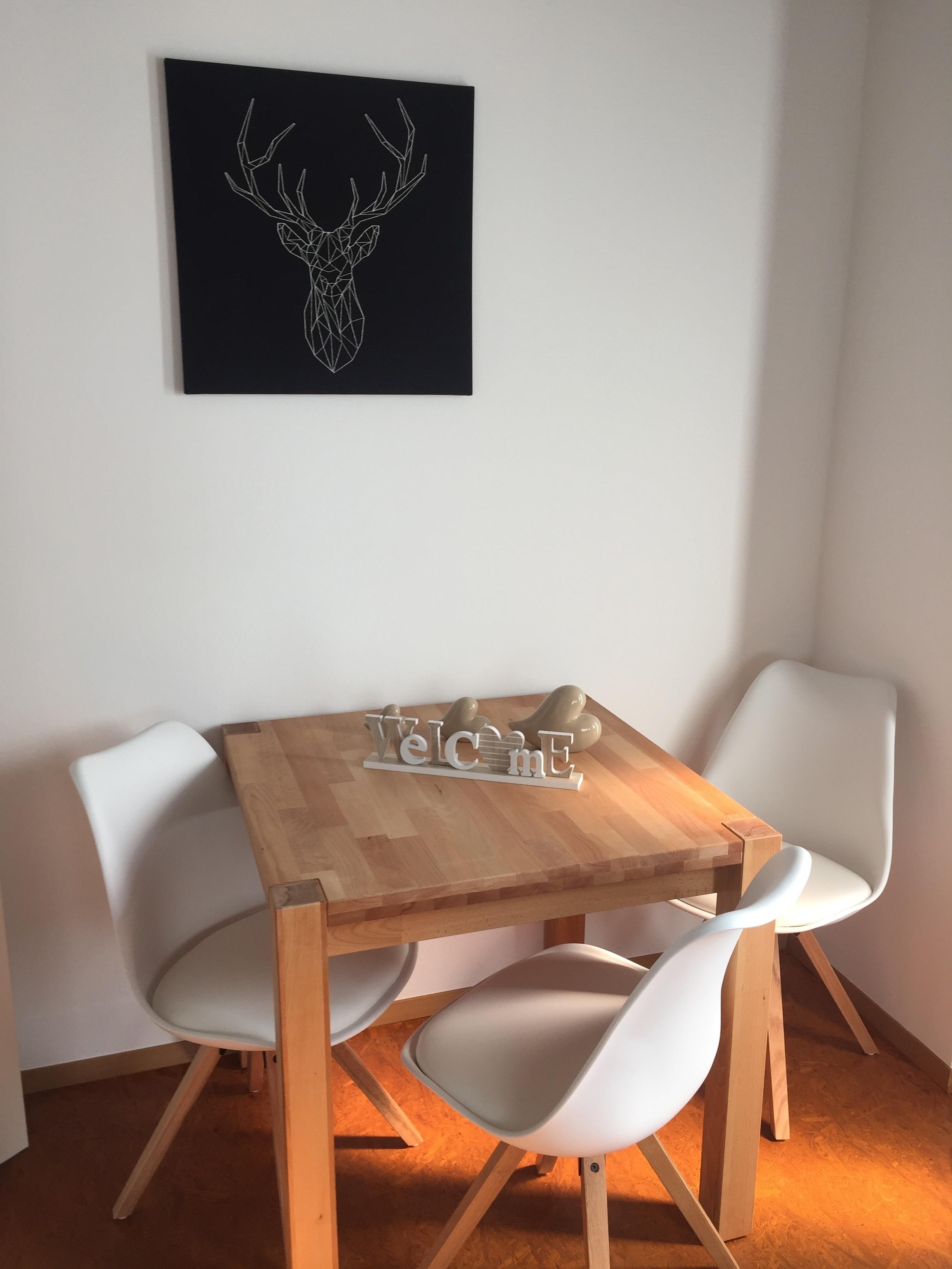 Die in 2019 neu eingerichtete Ferienwohnung verfügt über ein Wohn/- Esszimmer mit zusätzlichem Schlafsofa.