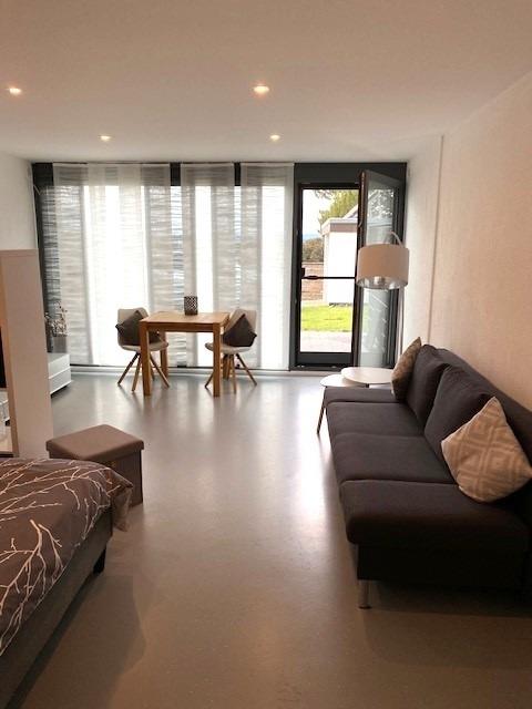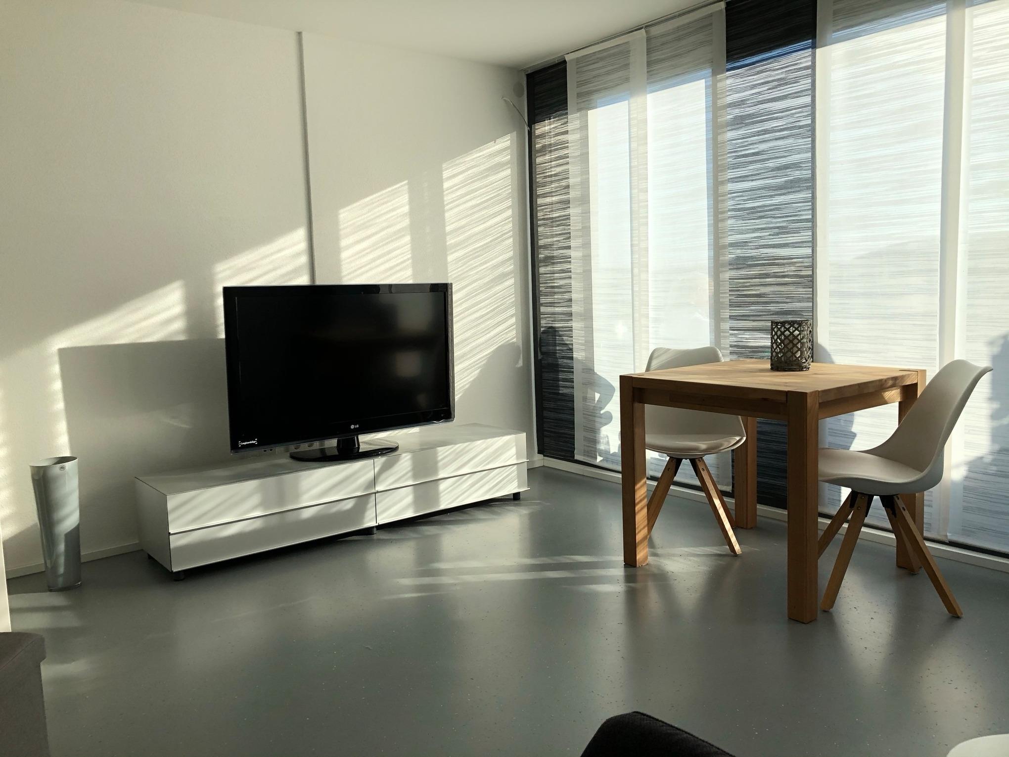 Das in 2019 neu eingerichtete möblierte 1,5 Zimmer-Apartment verfügt über ein Wohn/- Esszimmer mit bodentiefen Fenstern und el. Rollläden. Direkter Zugang zu der großzügigen Terrasse und Rasen.