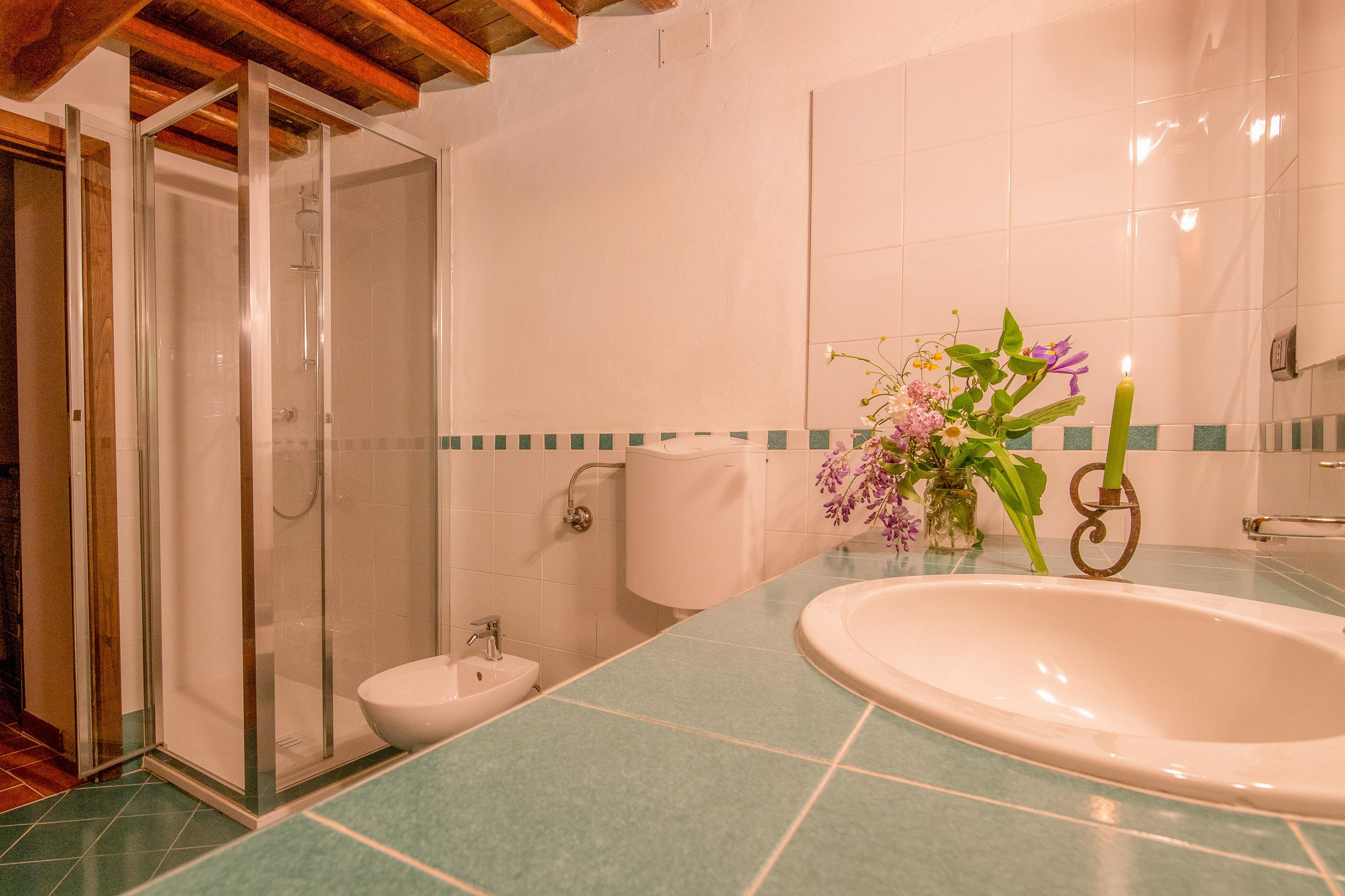Badeværelse med bruser og badekar