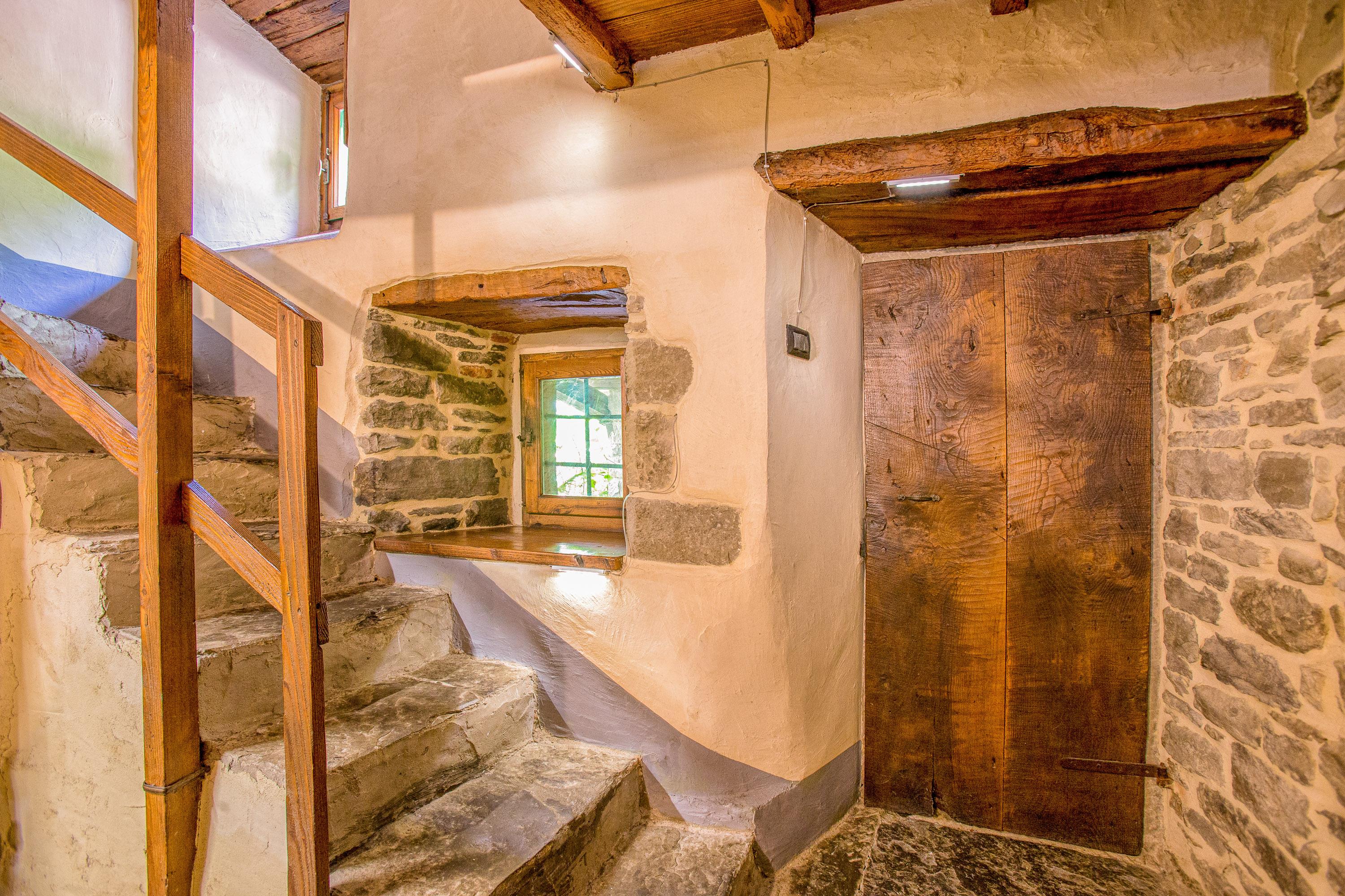 Das Haupthaus empfängt Sie mit einem wunderschönen Wohnraum im ehemaligen Mühlen-Raum. Im unteren Bereich des Hauses befinden sich zwei Wohnbereiche mit TV, eine große, gut ausgestattete Küche mit offener Feuerstelle, Grill und Pizzaofen sowie Zugang zum Garten. Ein großer Esstisch bietet Platz für 12 Personen. Die zweite Ebene verfügt über drei Schlafräume mit Doppelbett und ein weiteres Schlafzimmer mit Doppelbett und Einzelbett, insgesamt drei Badezimmer. Eines der Schlafzimmer hat einen direkten Zugang zum großen Pool und Jacuzzi auf der Sonnenterrasse. Auf Wunsch können in den Schlafräumen bis zu drei Zustellbetten für Kinder bis 12 Jahre bereitgestellt werden. Der Wintergarten mit großen Panoramafenstern, die vollständig geöffnet werden können, bietet eine angenehme Sitzgelegenheit im Sommer wie im Winter. Ein Esstisch, eine große Lounge und eine offene Feuerstelle mit Grill machen diesen Raum zum Lieblingsort mit einer wunderschönen Aussicht auf die unberührte Natur.