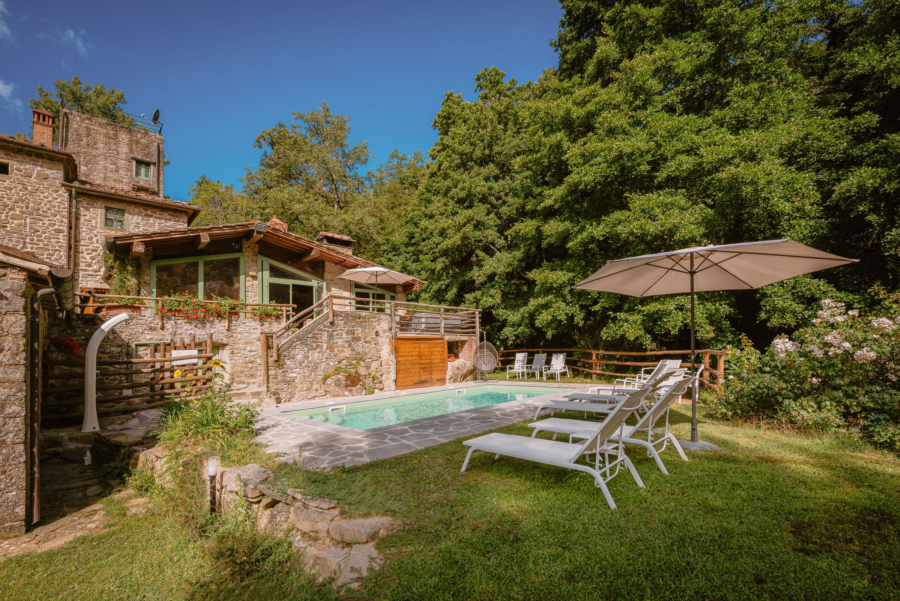 Erleben Sie die Magie und den Charme dieser ehemaligen Mühle aus dem Jahr 1730, die liebevoll restauriert wurde. Dieses außergewöhnliche Anwesen bietet Platz für bis zu 15 Personen und besteht aus einem Haupthaus und zwei charmanten Dependancen. Eingebettet in ein kleines Wäldchen, nur 3 km von Talla entfernt, bietet es ein einzigartiges Ambiente, das durch Komfort und Luxus ergänzt wird. Rund um das Anwesen finden Sie zahlreiche Sonnen- und Schattenplätze, Wasserfälle und Naturpools, die Sie in eine märchenhafte Welt eintauchen lassen.