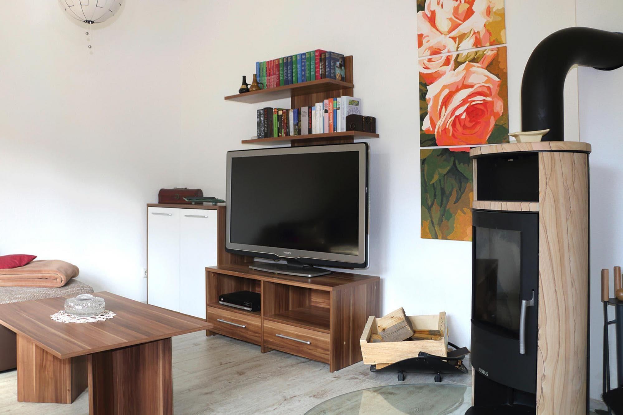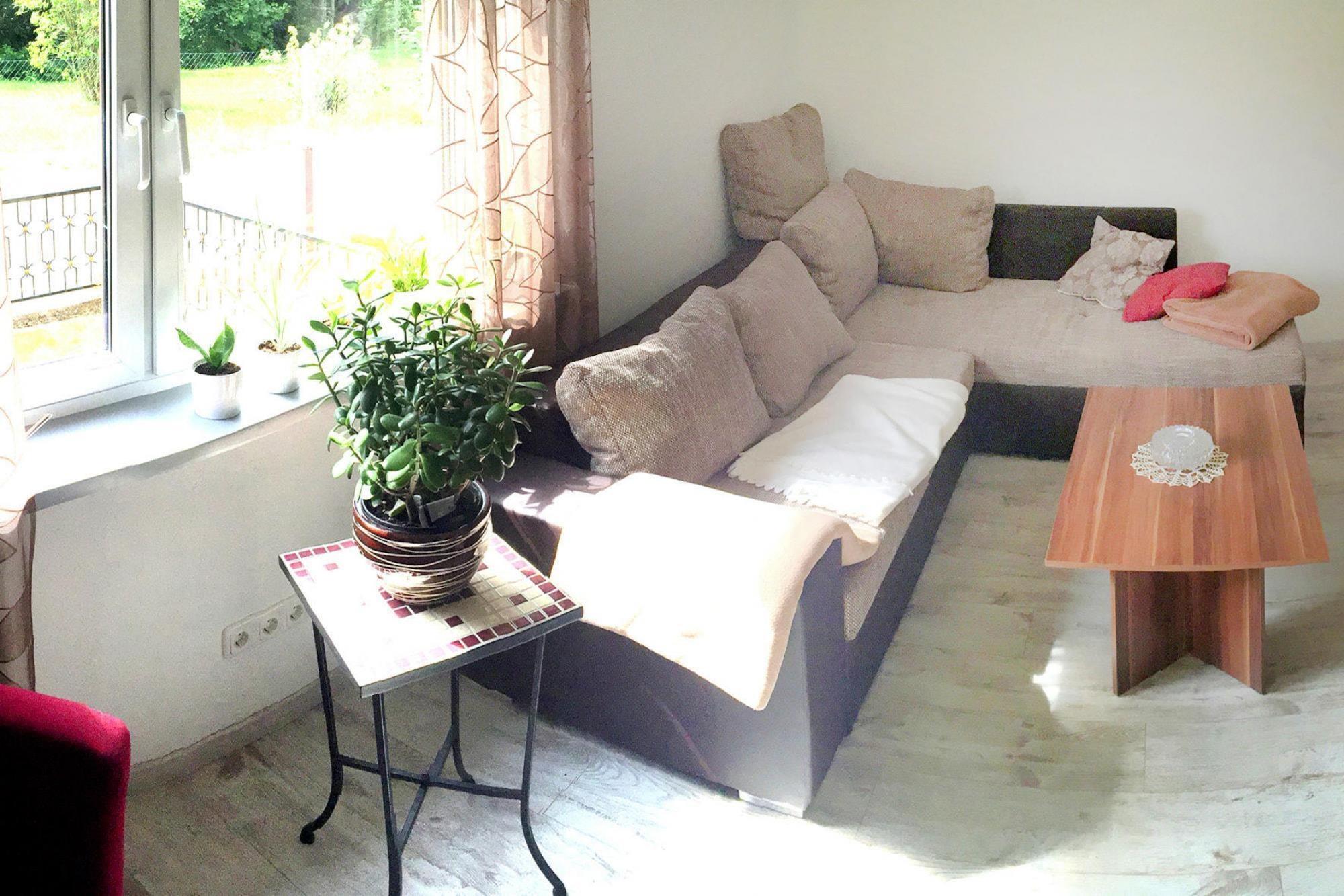 Rummelig ferielejlighed med Wi-Fi og pejs i udkanten af Tambach-Dietharz. Du kommer til at bo meget tæt på skoven i stueetagen i et hus med tre boligenheder. Et fitnessrum med udstyr og et afslapningsrum er tilgængeligt for offentligheden. Mod betaling kan du benytte den fælles sauna og den infrarøde kabine - især afslappende efter en lang vandretur eller i den kolde årstid. Hvad du ellers bør vide: Der bor også 3 katte og 1 hund på ejendommen. Det idylliske klimakursted Tambach-Dietharz ligger i Thüringer-distriktet Gotha i trekanten dannet af Eisenach, Erfurt og Meiningen. Der er flere restauranter og kroer, som med glæde vil forkæle dig med Thüringer-specialiteter, hvis du vil holde dit sommerhuskøkken koldt. Ikke langt væk ligger Rennsteig, Thüringens smukkeste vandresti og kendt langt ud over dets grænser. Dette feriehus er kun tilgængeligt til rekreative formål. Bestillinger foretaget på vegne af virksomheder vil blive annulleret, og eventuelle afbestillingsgebyrer vil blive opkrævet. Højdepunkter inkluderer: Wi-Fi Aktiviteter i nærheden: Velegnet for naturelskere hele året rundt, især vandrere og cyklister vil få noget for pengene i de omkringliggende bjerge og på den berømte Rennsteig-sti. På varme sommerdage anbefaler vi en tur til skovswimmingpoolen to kilometer væk, mens du i den kolde årstid kan dyrke vintersport i det nærliggende Oberhof.