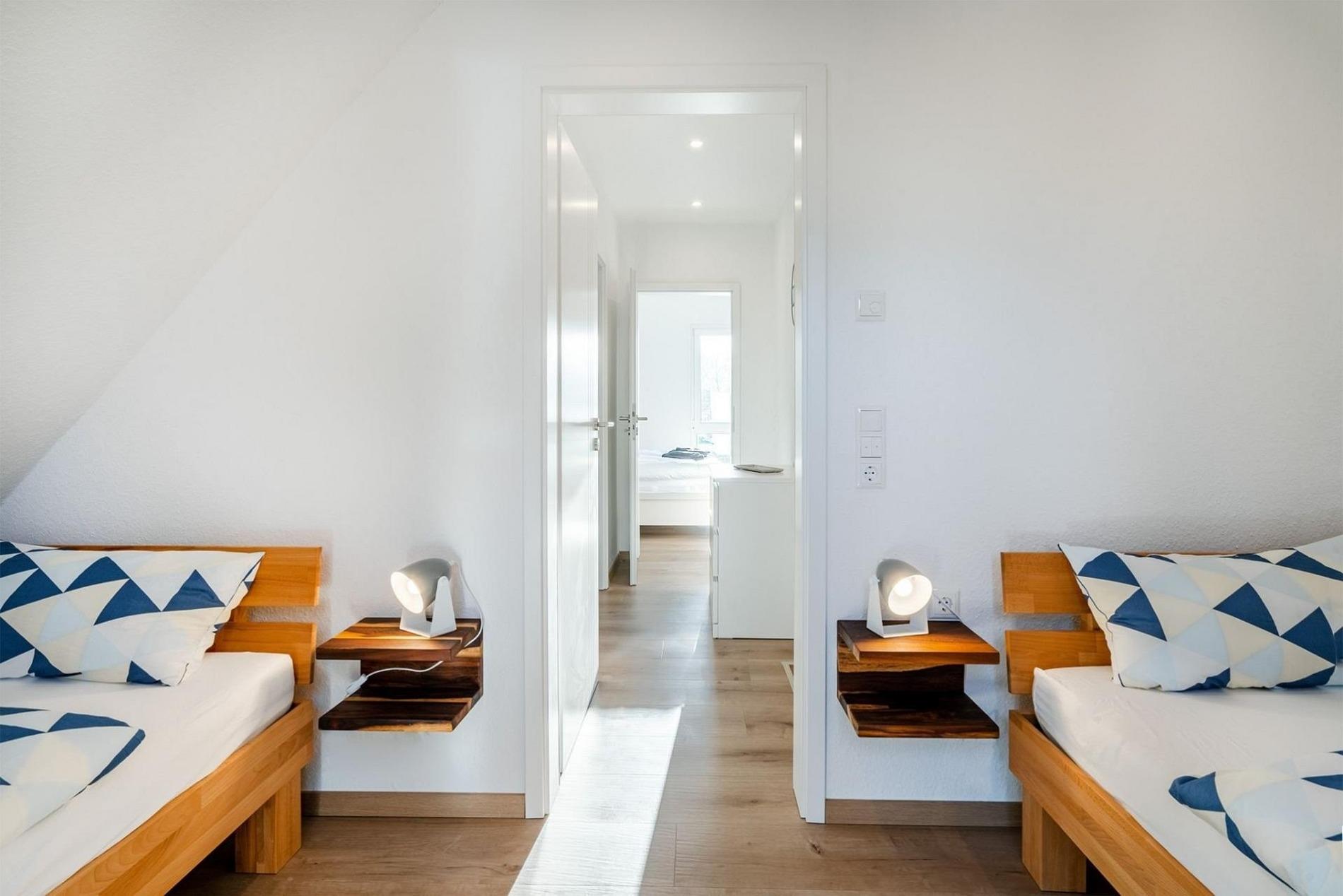 Doppelhaus direkt am Badesee Aurich-Tannenhausen.Das modern und liebevoll eingerichtete Doppelhaus Nitschke - FeWo Ebbe bietet die Möglichkeit, im Herzen Ostfrieslands Ihren Urlaub zu genießen. Die Ferienwohnung in einer unserer beiden in 2022 neu gebauten Doppelhäusern liegt direkt am idyllischen Badesee in Aurich-Tannenhausen. Jede Doppelhaushälfte verfügt über ~60 m² Wohnfläche und bietet Platz für bis zu vier Personen. Das offengestaltete Erdgeschoss mit Koch-/ Wohn- und Essbereich sowie die daran anschließende Terrasse laden zum Wohlfühlen ein. Im Obergeschoss befinden sich zwei gemütliche Schlafzimmer und ein großes Tageslichtbad mit begehbarer Dusche, Waschbecken und WC. Parkplatz für PKW ist direkt am Haus. Größere Familien dürfen gerne beide Doppelhaushälften zusammen reservieren.