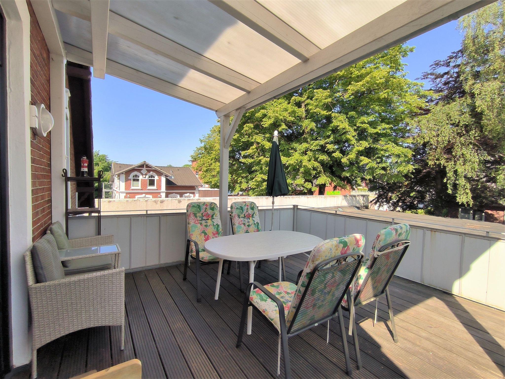 Hensen: FeWo mit überdachter Terrasse im Ortskern von Tarp, Ferienwohnung Hensen
